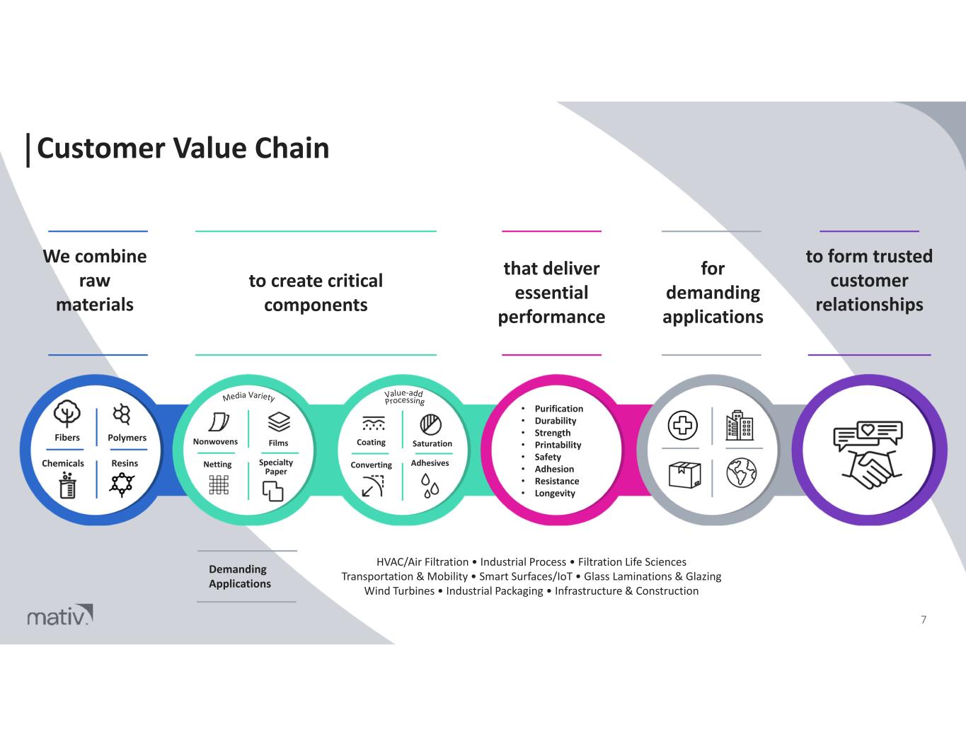 How We Win 16 0 SAFETY INCIDENTS 15+% MATIV ADJ. EBITDA MARGINS 5%+ TOPLINE GROWTH Focus on winning our categories that are aligned with key trends, dynamics and innovation in majority of our business Filtration & Netting Demand for Clean Air and Water Advanced Films Desire to Protect High-End Finishes and Surfaces Tapes, Labels & Liners Proliferation of Tape and Adhesive Applications Paper & Packaging Sustainability and Eco-Friendly Alternatives Healthcare Focus on Personal Health and Wellness CUSTOMER COLLABORATION Enduring track record as a trusted collaborator and innovator with long-lasting blue-chip customers around the world SOLUTION DRIVEN We make it happen; customized products meet demanding performance needs EXTENSIVE PRODUCT & TECHNOLOGY PORTFOLIO Focused on unique capabilities for premium applications GLOBAL MANUFACTURING & SUPPLY CHAIN Worldwide scale and resources with local assets and service customers around the world ADVANCED MATERIAL SCIENCE Deep expertise across technologies making us the ideal innovation and development partner PEOPLE & VALUES Across the company, we are committed to responsible stewardship, improving the world around us, and a culture of integrity and accountability ORGANIC KEY CATEGORY GROWTH DRIVERS LONG-TERM GOALS