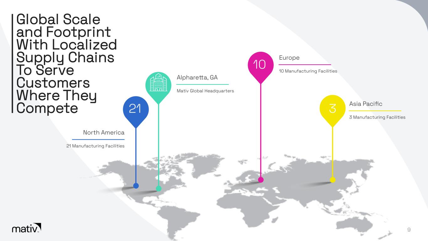 Global Scale and Footprint With Localized Supply Chains To Serve Customers Where They Compete 9 Asia Pacific 3 Manufacturing Facilities North America 21 Manufacturing Facilities Alpharetta, GA Mativ Global Headquarters Europe 10 Manufacturing Facilities 10 321