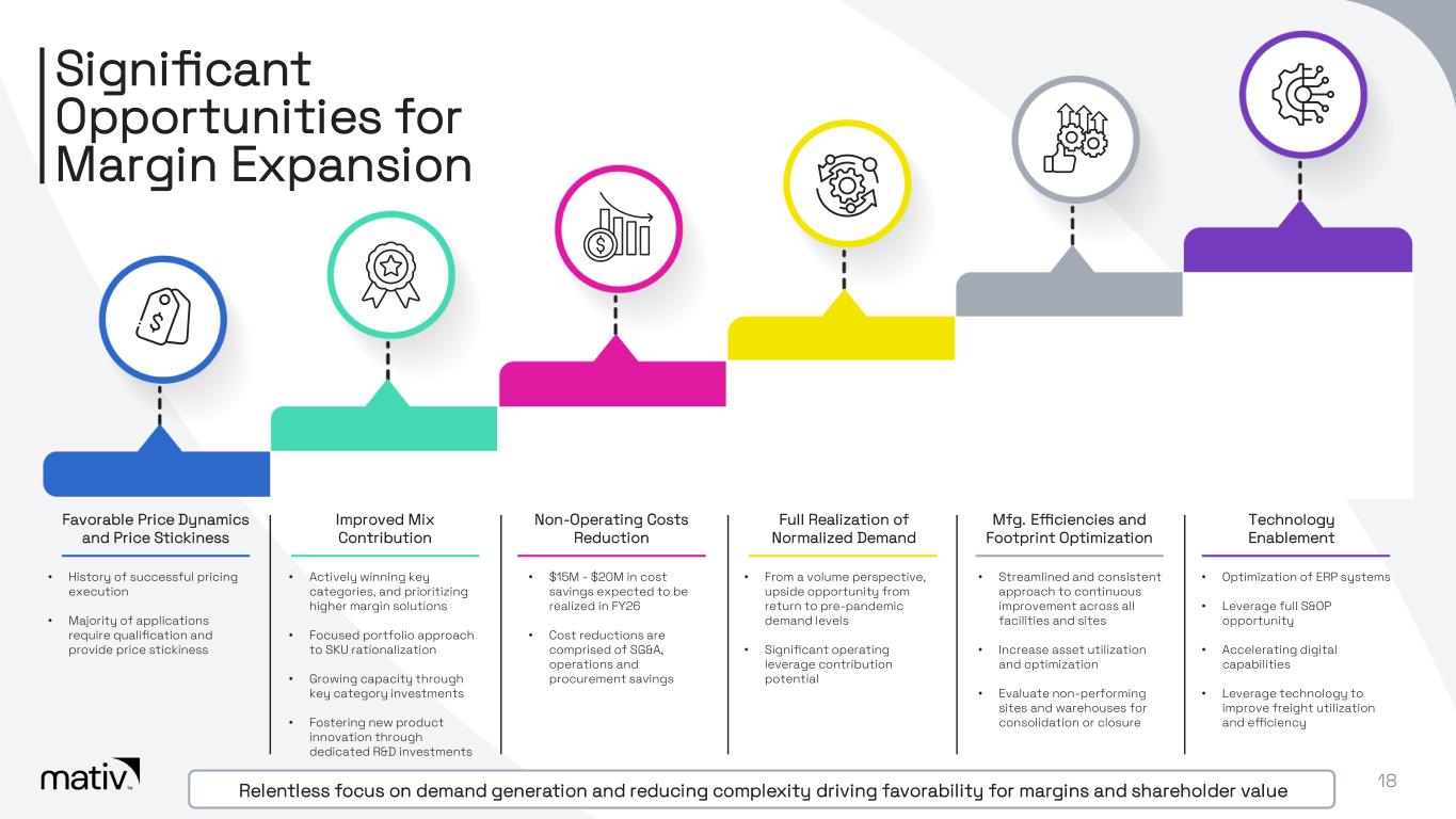 Multiple Drivers of Sustained Revenue Growth 17 Organic Key Category Growth Focus on winning our categories to drive GDP+ growth rates Focused Product Innovation Develop innovative feature-rich solutions tailored to customers’ complex problems with materials science expertise Market Adjacencies and New Applications Elevate existing products into broader markets and new use cases One Mativ Approach Convert current individual component purchases to provide holistic value chain solutions, enabling one-stop supplier relationship Strategic Cross Selling Global account management and cross-selling enablement from new reporting structure and aligned sales force model Pricing Execution and Stickiness Drive sustained price stickiness and favorable price/input cost spread with value of our solutions 1 6 2 3 4 5