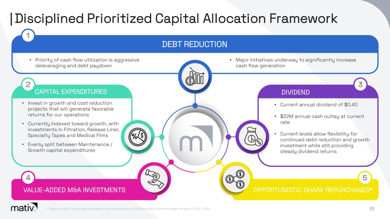 Disciplined Prioritized Capital Allocation Framework 19 OPPORTUNISTIC SHARE REPURCHASES*VALUE-ADDED M&A INVESTMENTS DEBT REDUCTION • Priority of cash flow utilization is aggressive deleveraging and debt paydown • Major initiatives underway to significantly increase cash flow generation DIVIDEND • Current annual dividend of $0.40 • $22M annual cash outlay at current rate • Current levels allow flexibility for continued debt reduction and growth investment while still providing steady dividend returns CAPEX AT 3-4% OF REVENUE • Invest in growth and cost reduction projects that will generate favorable returns for our operations • Currently indexed toward growth, with investments in Filtration, Release Liner, Specialty Tapes and Medical Films • Evenly split between Maintenance / Growth capital expenditures CAPITAL EXPENDITURES 1 2 3 4 5 * Opportunistic share repurchases to be resumed once net leverage is within target range of 2.5x – 3.5x