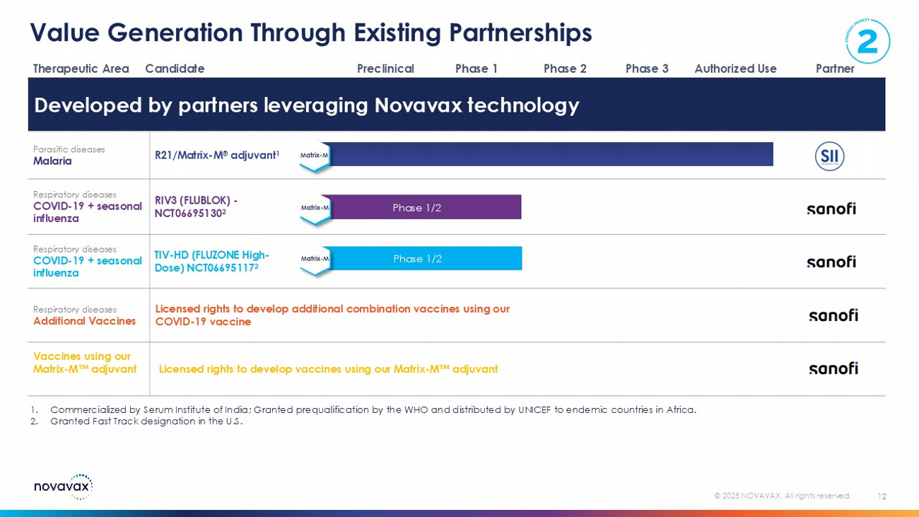 STRATEGIC PRIORITY 2 Leverage our Technology Platform and Pipeline to Forge Additional Partnerships © 2025 NOVAVAX. All rights reserved. 11