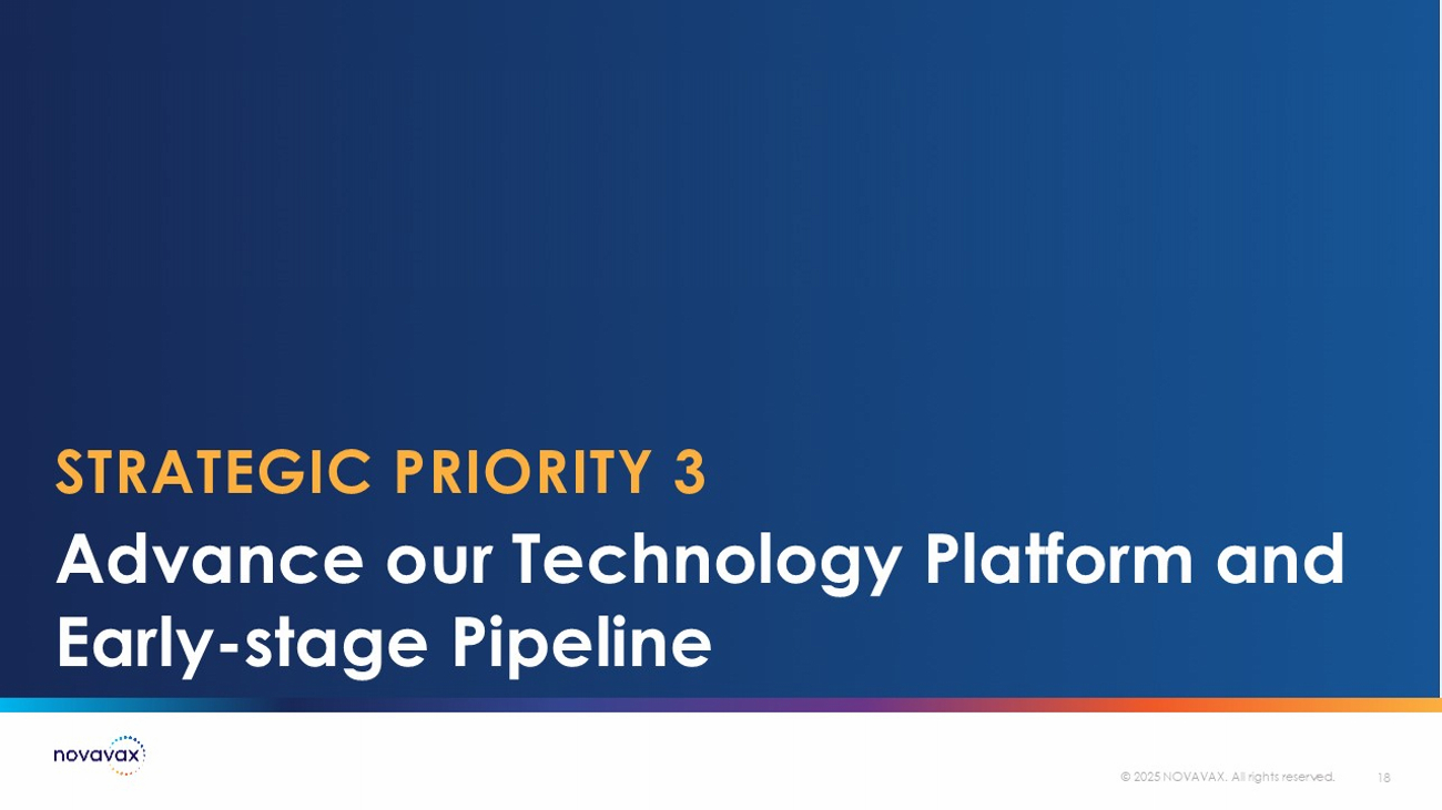STRATEGIC PRIORITY 3 Advance our Technology Platform and Early - stage Pipeline 18 © 2025 NOVAVAX. All rights reserved.