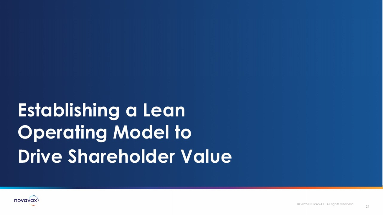 Establishing a Lean Operating Model to Drive Shareholder Value © 2025 NOVAVAX. All rights reserved. 21