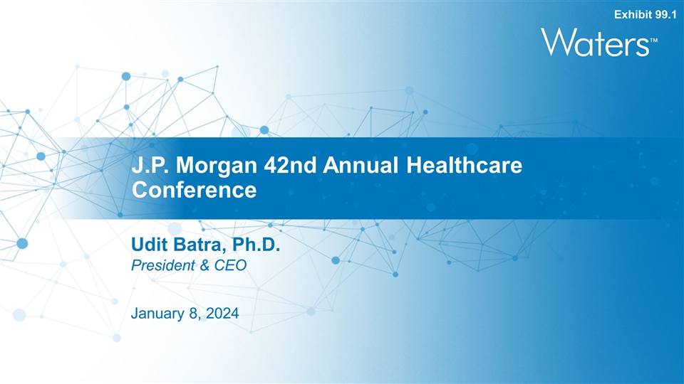 Exhibit 99.1 J.P. Morgan 42nd Annual Healthcare Conference Udit Batra, Ph.D. President & CEO January 8, 2024