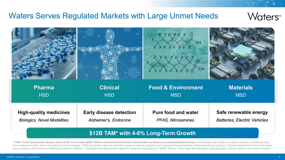 Key Messages Strong Business Model in Attractive Markets Transformation that is Delivering Well Positioned for Future Growth ©2024 Waters Corporation 3