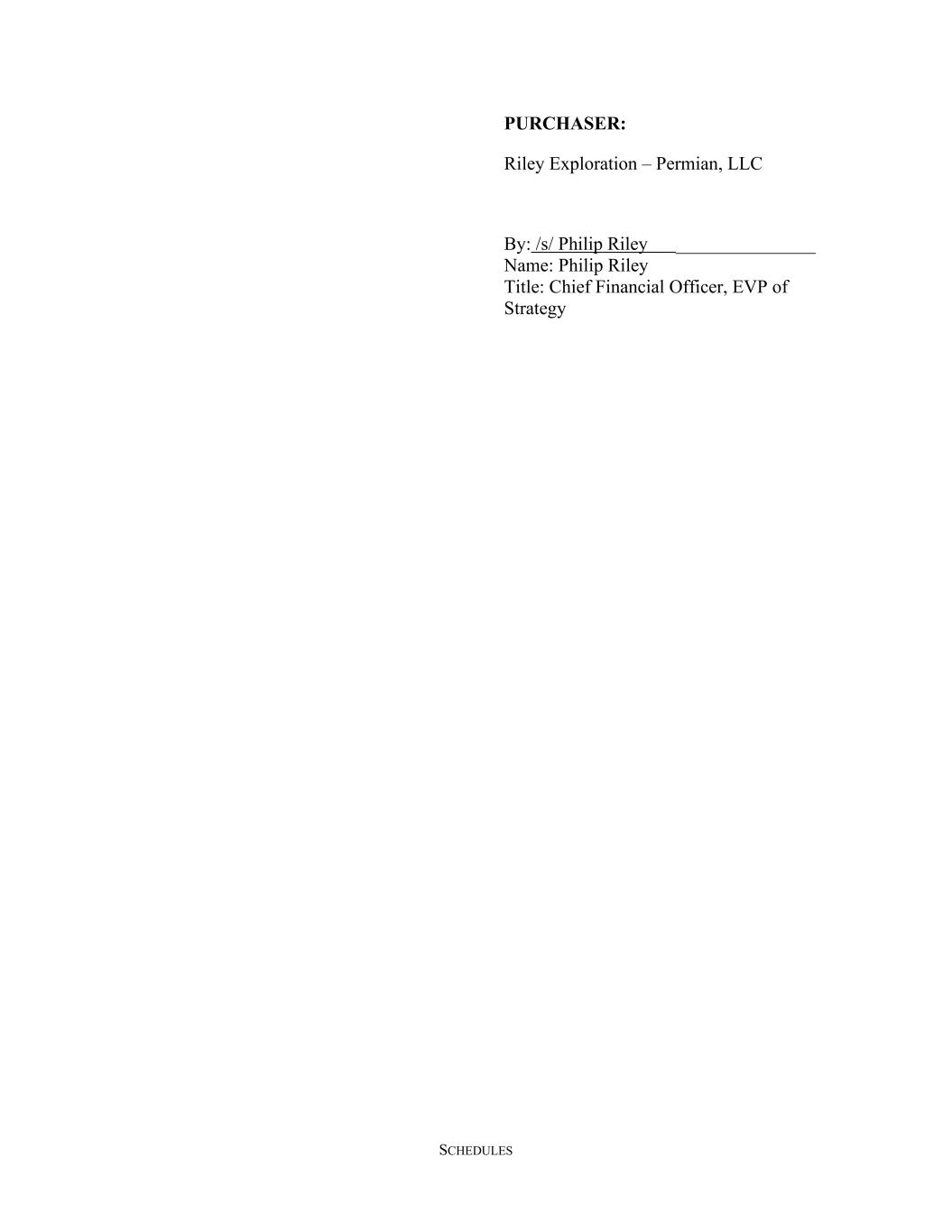SCHEDULES PURCHASER: Riley Exploration – Permian, LLC By: /s/ Philip Riley _______________ Name: Philip Riley Title: Chief Financial Officer, EVP of Strategy