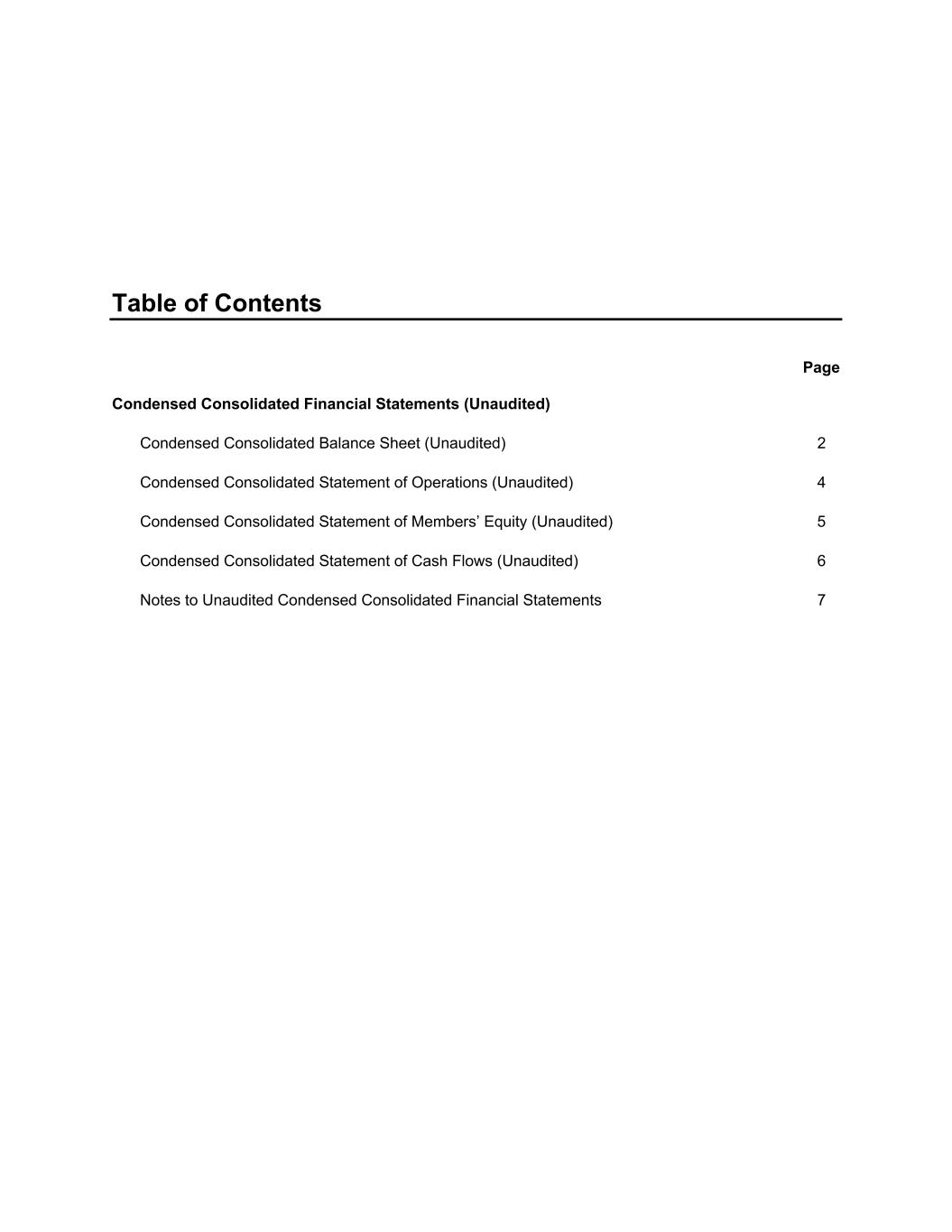 Table of Contents Page Condensed Consolidated Financial Statements (Unaudited) Condensed Consolidated Balance Sheet (Unaudited) 2 Condensed Consolidated Statement of Operations (Unaudited) 4 Condensed Consolidated Statement of Members’ Equity (Unaudited) 5 Condensed Consolidated Statement of Cash Flows (Unaudited) 6 Notes to Unaudited Condensed Consolidated Financial Statements 7