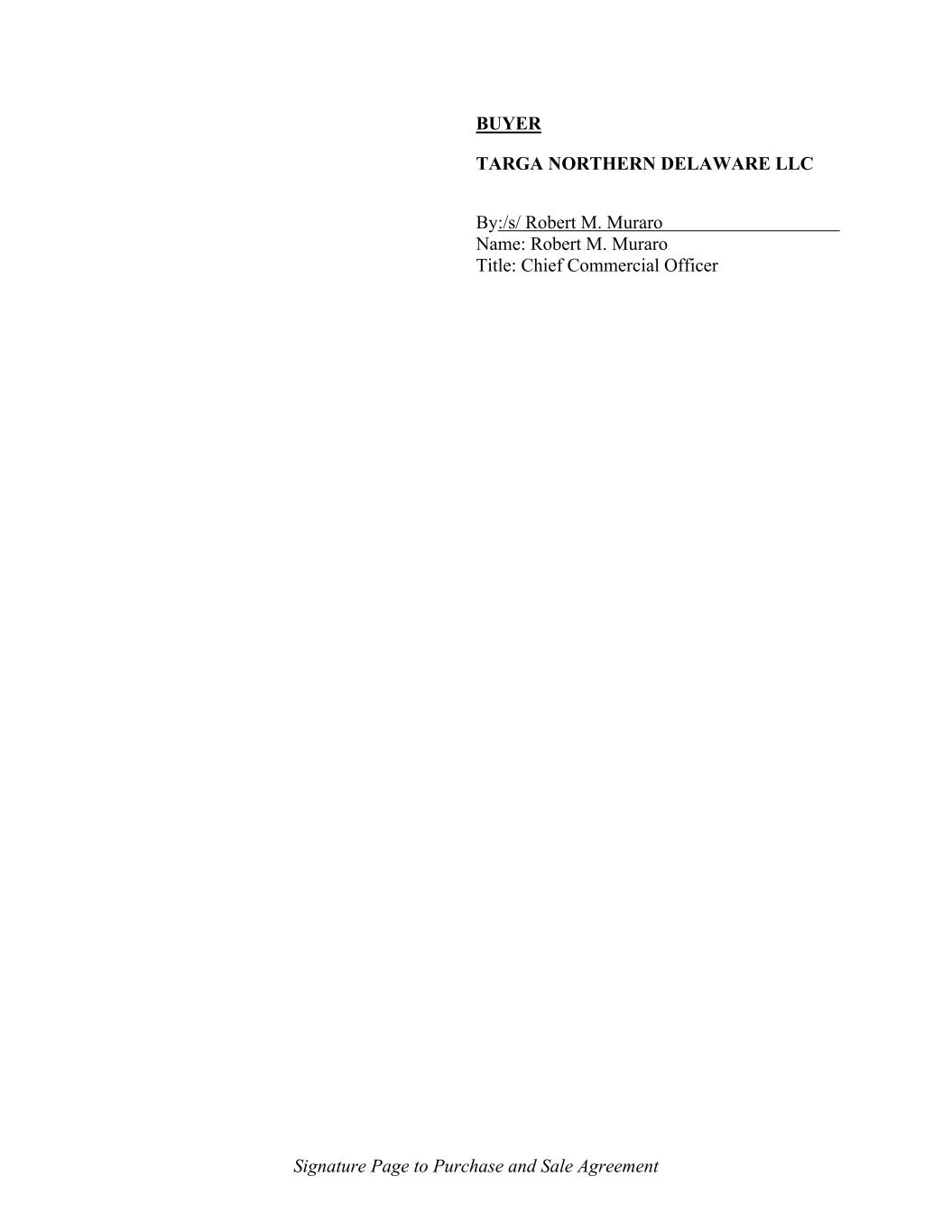 Signature Page to Purchase and Sale Agreement BUYER TARGA NORTHERN DELAWARE LLC By:/s/ Robert M. Muraro Name: Robert M. Muraro Title: Chief Commercial Officer