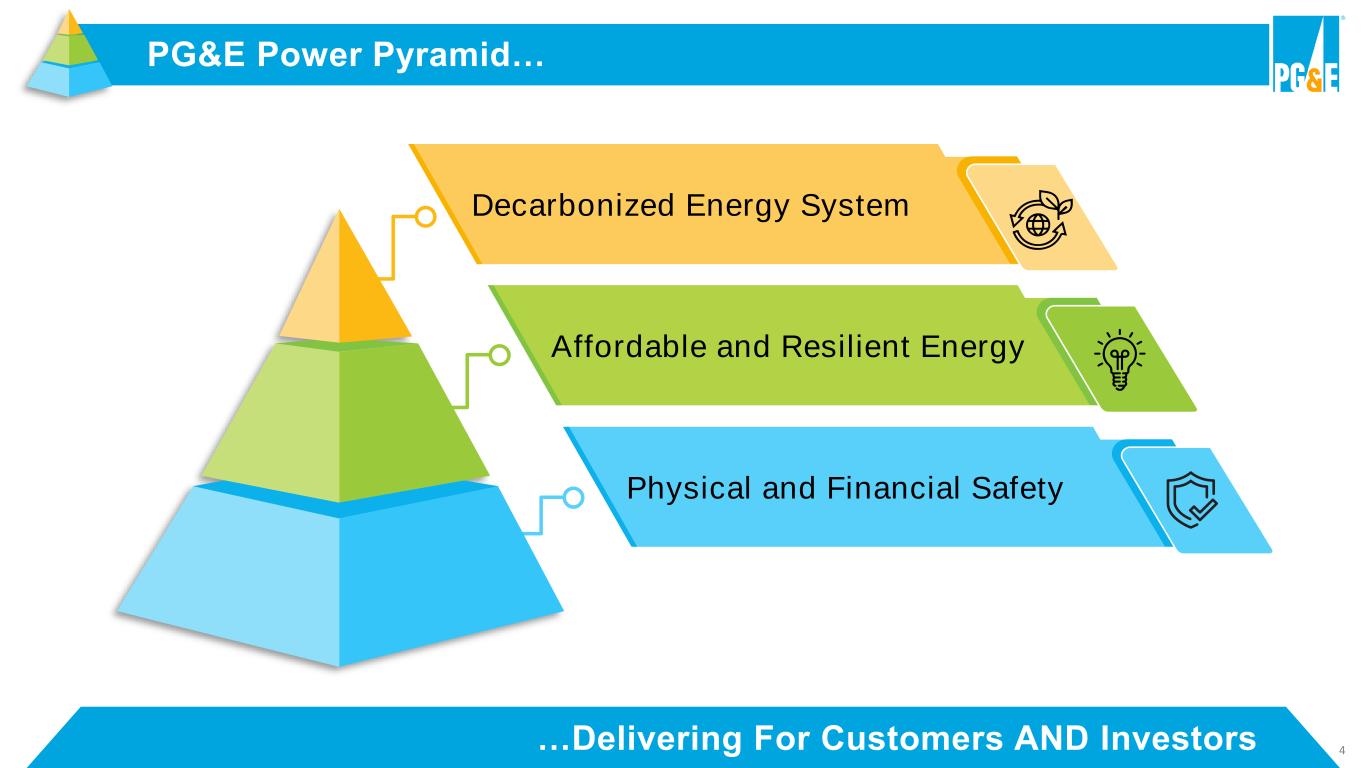 4…Delivering For Customers AND Investors PG&E Power Pyramid… Physical and Financial Safety Decarbonized Energy System Affordable and Resilient Energy