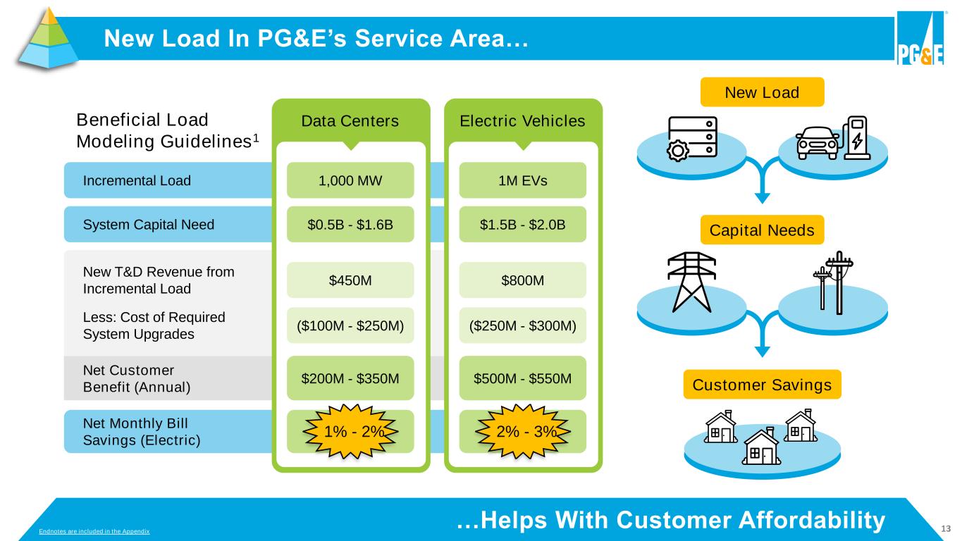 12 O&M Cost Reduction Performance… Examples of O&M Cost Reductions (Non-Fuel) Resource Management Efficiencies and Insurance Capital Conversion Planning, Execution and Automation Net Cost Increases Net Savings Percent Savings $330 3% (115) 50 100 270 $25 (millions) 2022 Actual $510 5½% (60)2 130 --1 350 $90 (millions) 2023 Actual $200 2% (200) 155 30 150 $65 (millions) 2024 Plan $200 2% (140) 195 30 50 $65 (millions) LONG-TERM PLAN3 …Has Exceeded 2% Annual Target $200 - $300 2% - 3% (140) - (200) 195 - 250 30 - 100 50 $65 - $100 (millions) OPPORTUNITY3 - Endnotes are included in the Appendix