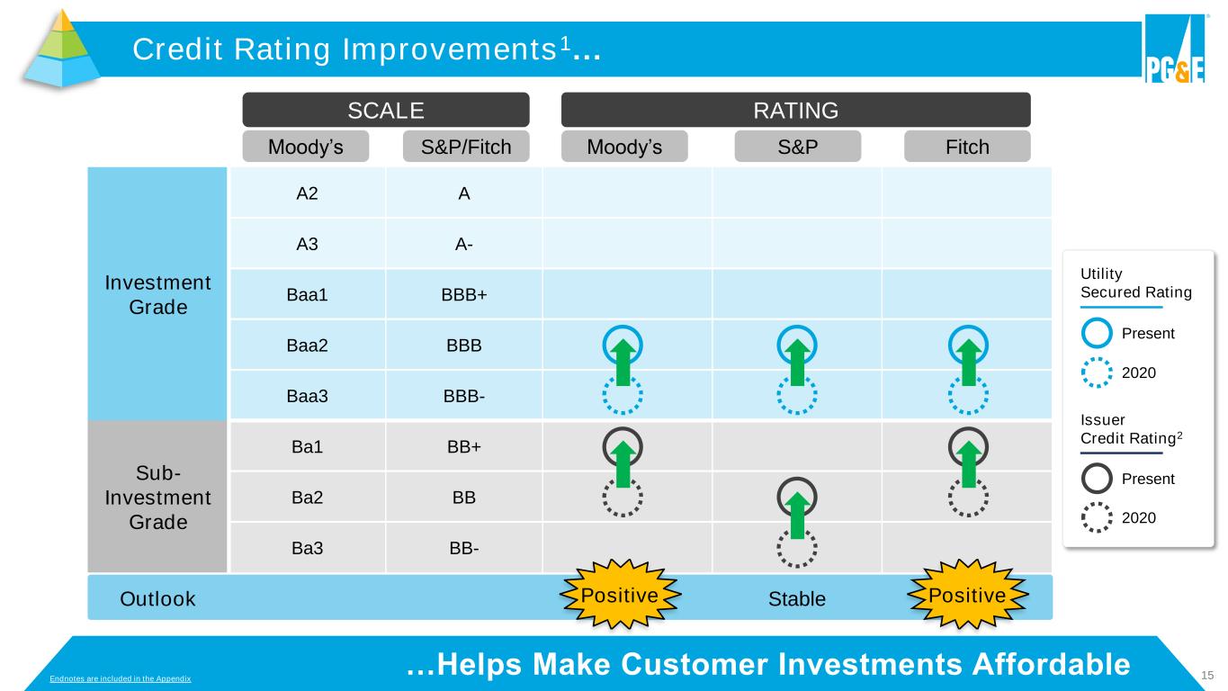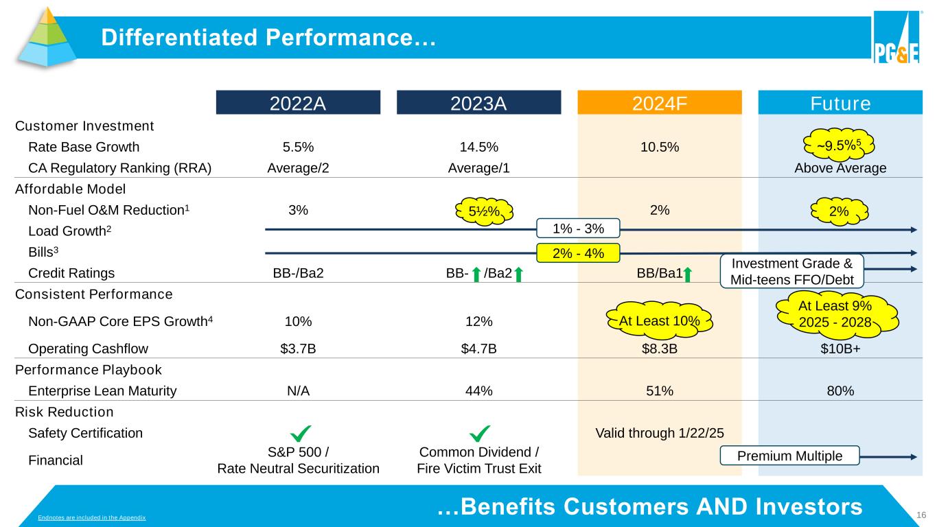 15 SCALE RATING Moody's S&P/Fitch Moody’s S&P Fitch Investment Grade A2 A A3 A- Baa1 BBB+ Baa2 BBB Baa3 BBB- Sub- Investment Grade Ba1 BB+ Ba2 BB Ba3 BB- Outlook Stable …Helps Make Customer Investments Affordable Credit Rating Improvements1… Positive Positive SCALE RATING ’ S& / it ’s it Present 2020 Present 2020 Issuer Credit Rating2 Utility Secured Rating Endnotes are included in the Appendix