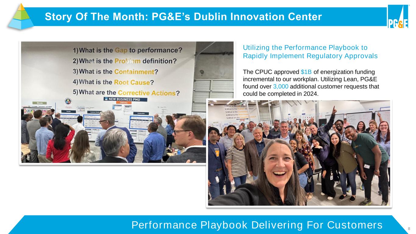 8Performance Playbook Delivering For Customers Story Of The Month: PG&E’s Dublin Innovation Center Utilizing the Performance Playbook to Rapidly Implement Regulatory Approvals The CPUC approved $1B of energization funding incremental to our workplan. Utilizing Lean, PG&E found over 3,000 additional customer requests that could be completed in 2024.