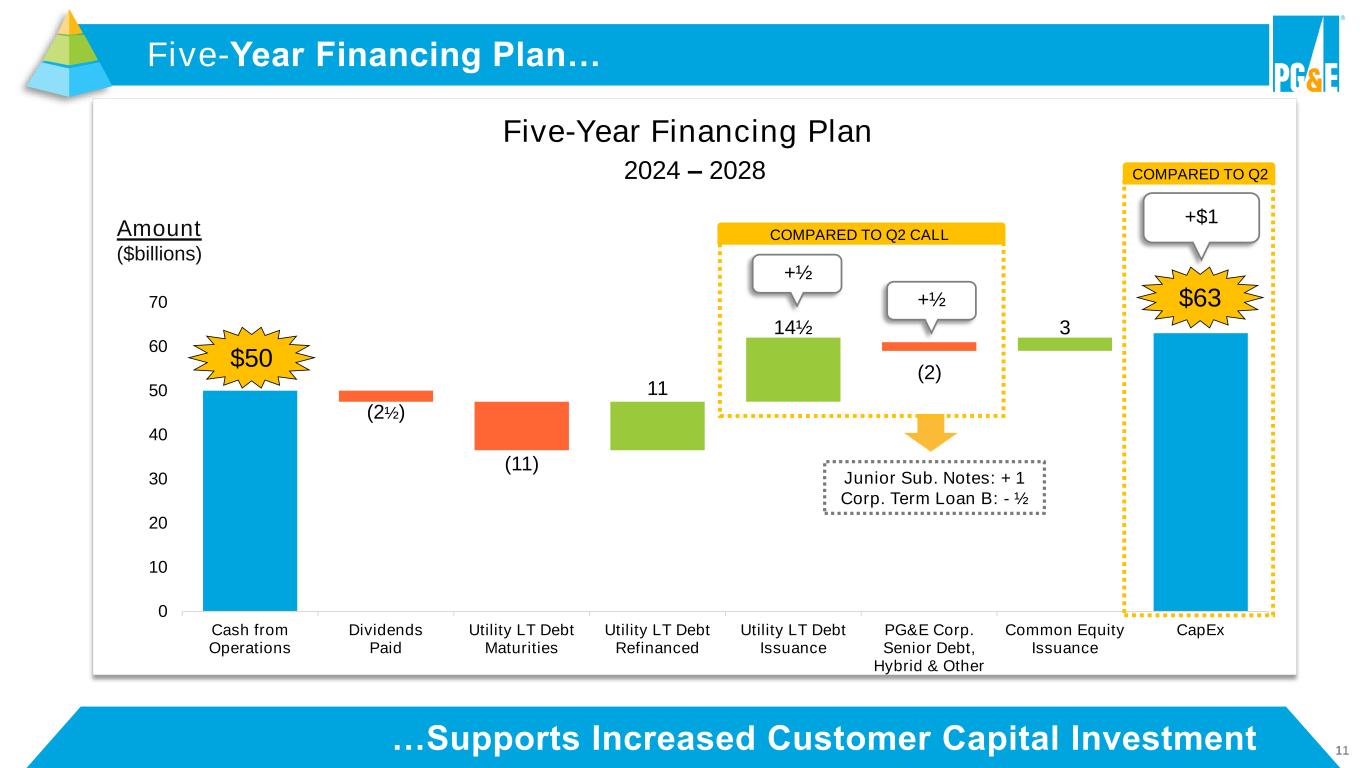 10…Raised To $63B Five-Year Capital Plan… Plus At Least Customer Beneficial Investment Opportunities3 Transportation Electrification Capacity Investments Transmission Upgrades: Data Centers and System Investments Incremental New Business Connections Hydro and Storage IT and Automation $5B CPUC FERC ~10% CAGR 2023-2028 % Already Authorized1 93% 93% 86% 82%94% Weighted Average Rate Base ($B) $63B 2024-2028 CPUC FERC CapEx ($B)2 Endnotes are included in the Appendix $63 11 11 12 13 14 15 46 52 57 61 69 76 57 63 69 74 83 91 2023A 2024F 2025F 2026F 2027F 2028F 1.4 1.5 2.1 1.8 1.8 1.9 8.4 9.3 10.7 10.2 11.8 12.1 9.8 10.8 12.8 12.0 13.6 14.0 2023A 2024F 2025F 2026F 2027F 2028F