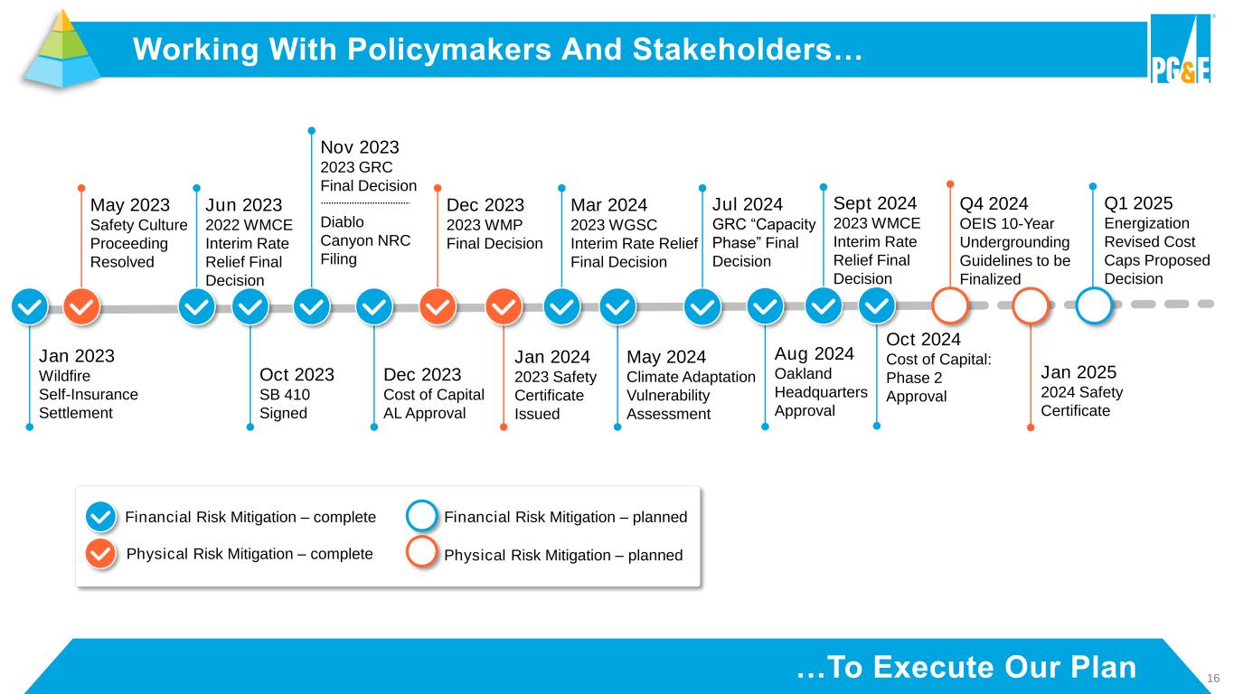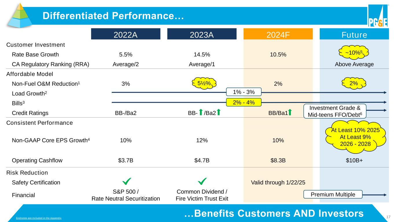 16…To Execute Our Plan Working With Policymakers And Stakeholders… Jan 2023 Wildfire Self-Insurance Settlement Q4 2024 OEIS 10-Year Undergrounding Guidelines to be Finalized May 2023 Safety Culture Proceeding Resolved Financial Risk Mitigation – complete Physical Risk Mitigation – complete Physical Risk Mitigation – planned Jun 2023 2022 WMCE Interim Rate Relief Final Decision Oct 2023 SB 410 Signed Diablo Canyon NRC Filing Nov 2023 2023 GRC Final Decision Dec 2023 Cost of Capital AL Approval Dec 2023 2023 WMP Final Decision Jan 2024 2023 Safety Certificate Issued Mar 2024 2023 WGSC Interim Rate Relief Final Decision May 2024 Climate Adaptation Vulnerability Assessment Jul 2024 GRC “Capacity Phase” Final Decision Oct 2024 Cost of Capital: Phase 2 Approval Q1 2025 Energization Revised Cost Caps Proposed Decision Aug 2024 Oakland Headquarters Approval Sept 2024 2023 WMCE Interim Rate Relief Final Decision Financial Risk Mitigation – planned Jan 2025 2024 Safety Certificate