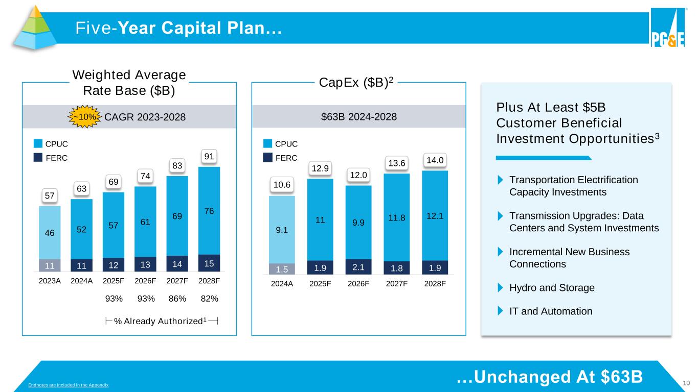 23 2025 Factors Impacting Earnings Endnotes are included in the Appendix $1.48 - $1.52 Non-GAAP Core EPS1 Diluted Shares 20252 2,195M - 2,285M Key Ranges Weighted Average Rate Base3 CPUC $57B FERC $12B Total Rate Base $69B Equity Ratio:4 52% Return on Equity: 10.28% Non-Core Items5 Key Factors Affecting Non-GAAP Core Earnings7 ($ millions after tax) Estimated non-core items guidance $400 - $430 Non-core items cash portion6 $300 ($ millions after tax) Unrecoverable net interest8 $350 - $400 Other earnings factors including AFUDC equity, incentive revenues, tax benefits, and cost savings, net of below-the-line costs Changes from prior quarter noted in blue text