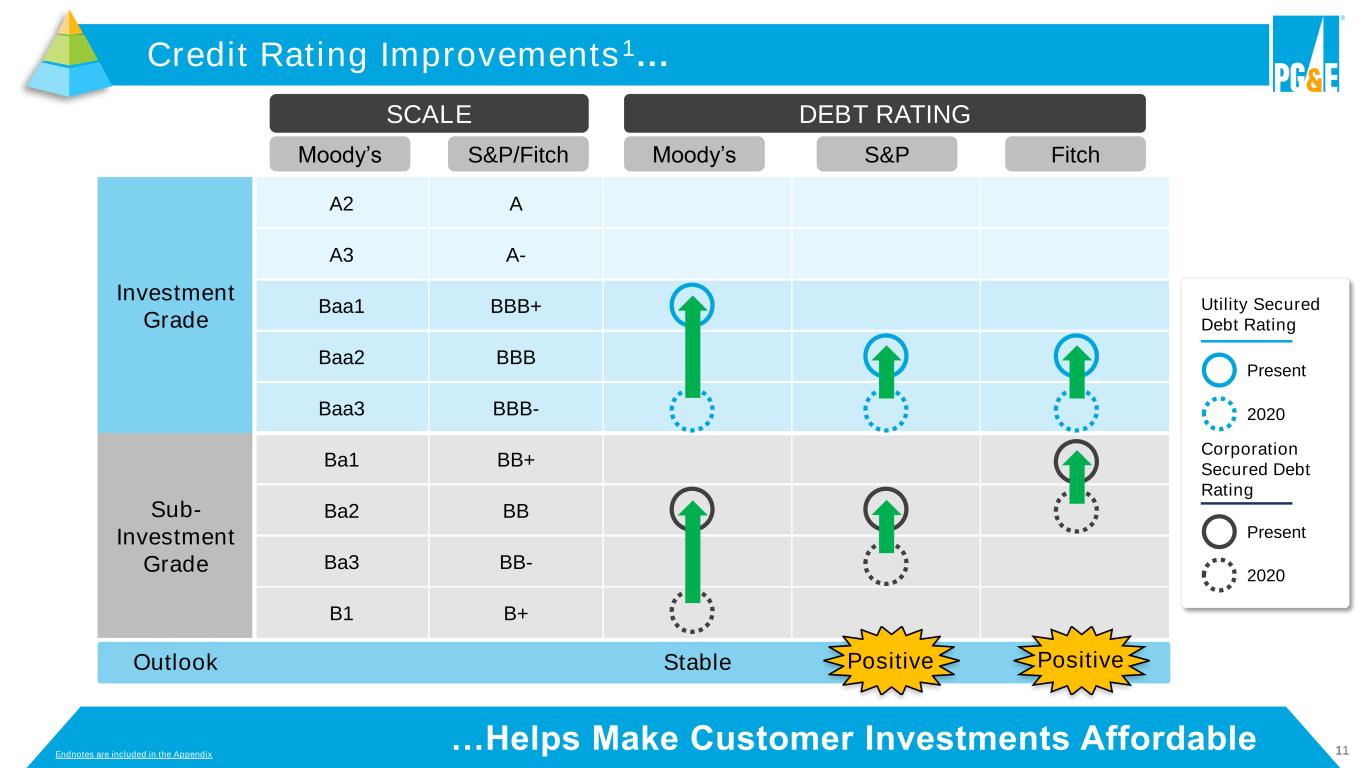 11 SCALE RATING Moody's S&P/Fitch Moody’s S&P Fitch Investment Grade A2 A A3 A- Baa1 BBB+ Baa2 BBB Baa3 BBB- Sub- Investment Grade Ba1 BB+ Ba2 BB Ba3 BB- B1 B+ Outlook Stable Stable …Helps Make Customer Investments Affordable Credit Rating Improvements1… Positive Positive SCALE DEBT RATING ’ S& / it ’s it Present 2020 Present 2020 Corporation Secured Debt Rating Utility Secured Debt Rating Endnotes are included in the Appendix