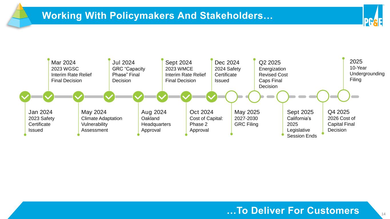 14…To Deliver For Customers Working With Policymakers And Stakeholders… 2025 10-Year Undergrounding Filing Jan 2024 2023 Safety Certificate Issued Mar 2024 2023 WGSC Interim Rate Relief Final Decision May 2024 Climate Adaptation Vulnerability Assessment Jul 2024 GRC “Capacity Phase” Final Decision Oct 2024 Cost of Capital: Phase 2 Approval Q4 2025 2026 Cost of Capital Final Decision Aug 2024 Oakland Headquarters Approval Sept 2024 2023 WMCE Interim Rate Relief Final Decision Dec 2024 2024 Safety Certificate Issued Q2 2025 Energization Revised Cost Caps Final Decision May 2025 2027-2030 GRC Filing Sept 2025 California’s 2025 Legislative Session Ends