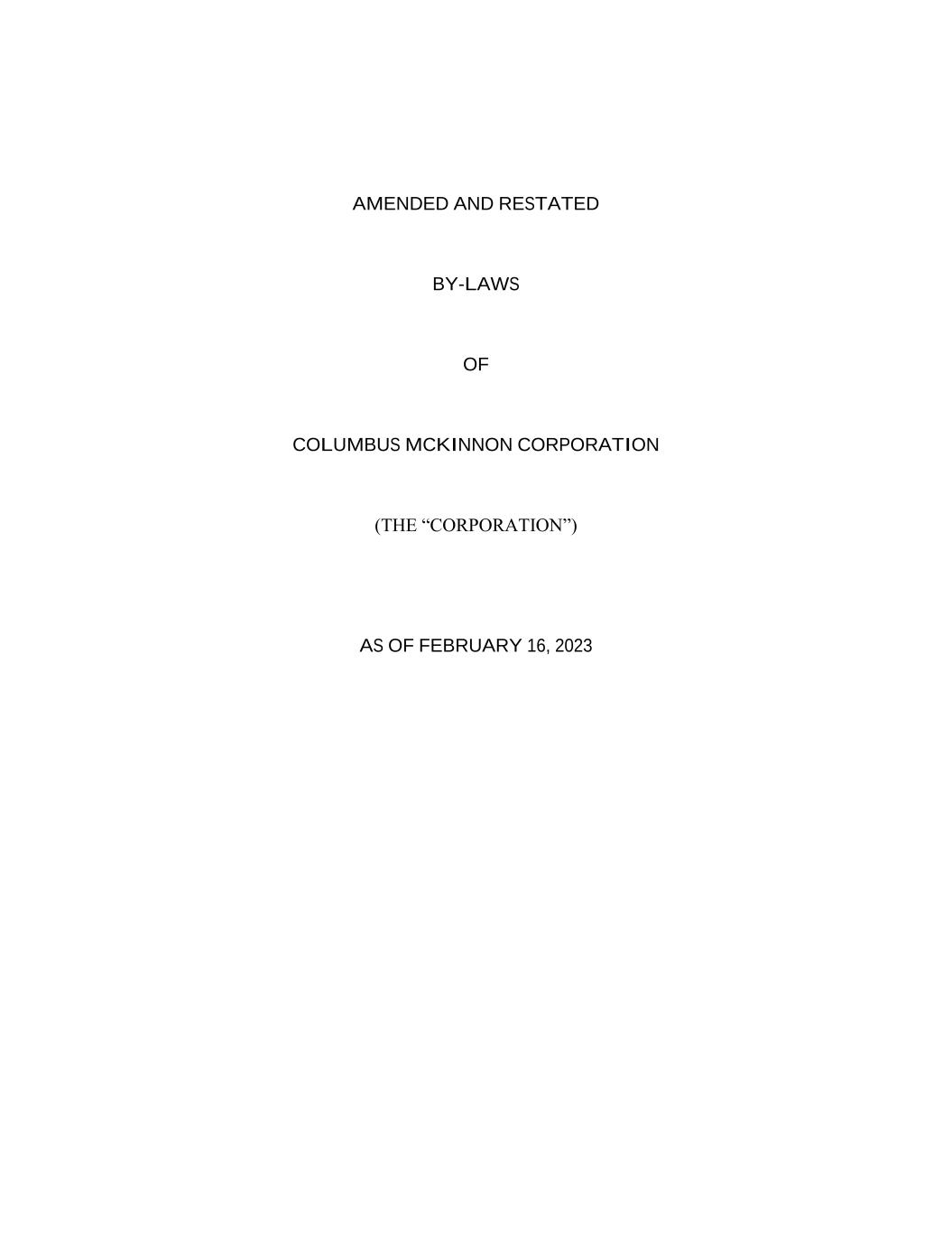 AMENDED AND RESTATED BY-LAWS OF COLUMBUS MCKINNON CORPORATION (THE “CORPORATION”) AS OF FEBRUARY 16, 2023