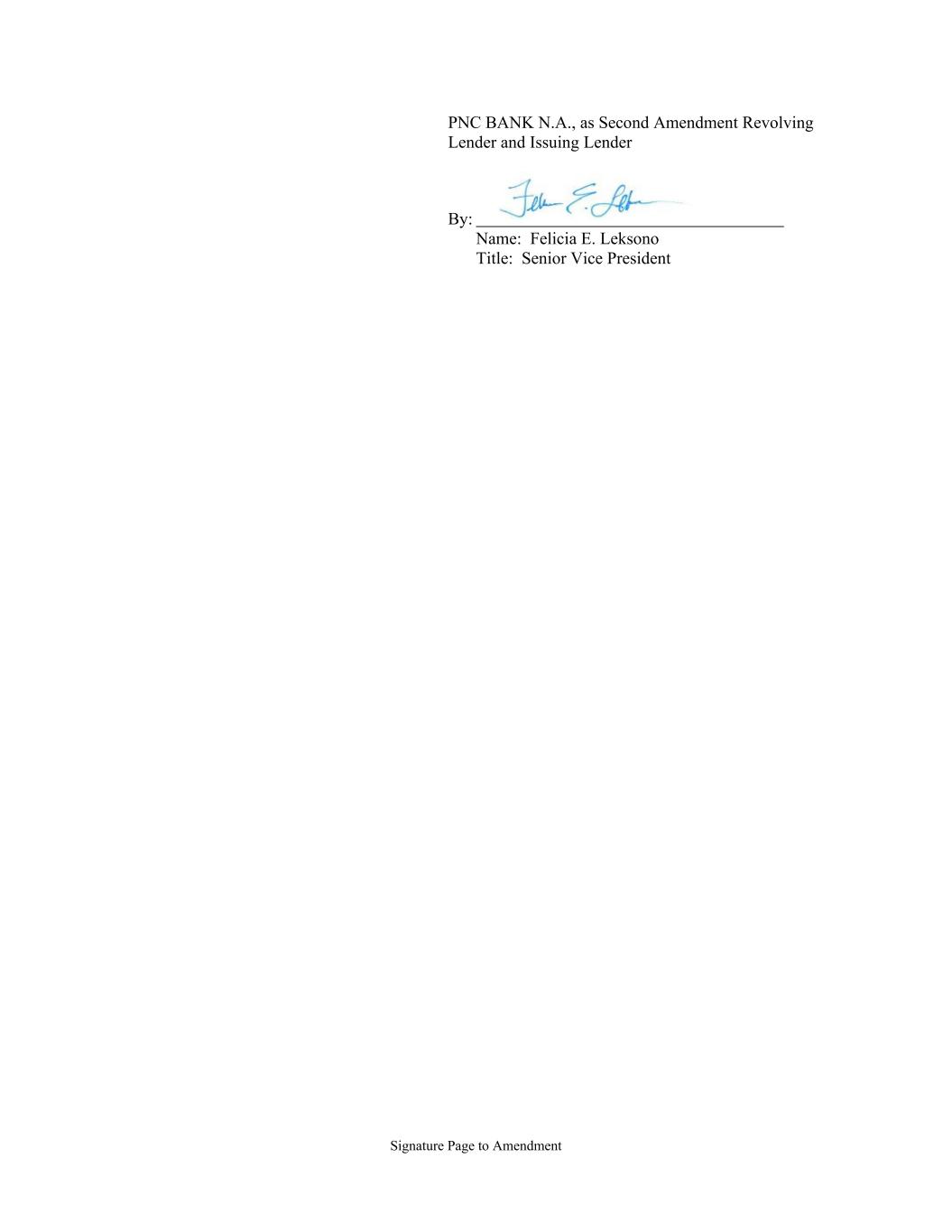 Signature Page to Amendment PNC BANK N.A., as Second Amendment Revolving Lender and Issuing Lender By: Name: Felicia E. Leksono Title: Senior Vice President