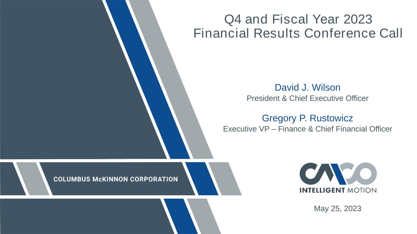Q4 and Fiscal Year 2023 Financial Results Conference Call President & Chief Executive Officer David J. Wilson May 25, 2023 Executive VP – Finance & Chief Financial Officer Gregory P. Rustowicz
