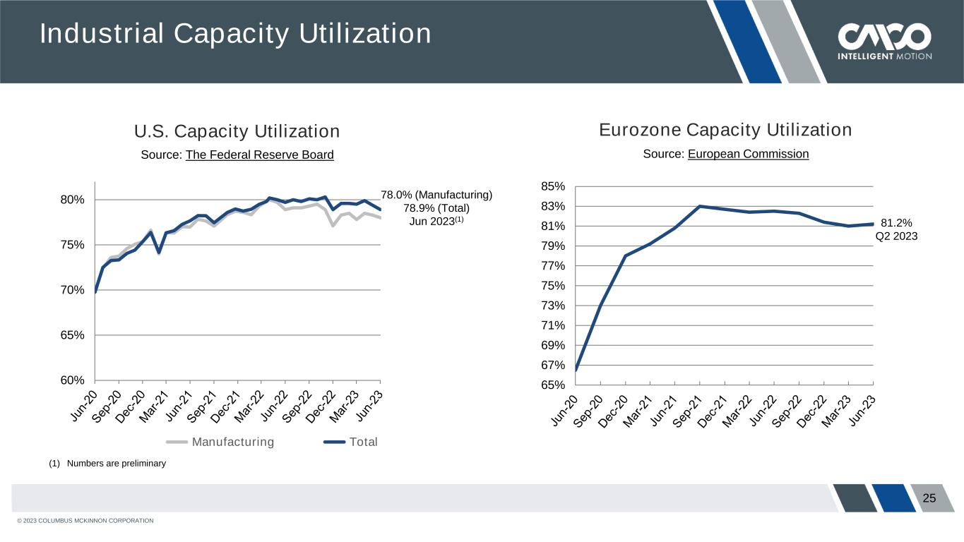 © 2023 COLUMBUS MCKINNON CORPORATION 25 U.S. Capacity Utilization Eurozone Capacity Utilization Industrial Capacity Utilization Source: The Federal Reserve Board Source: European Commission 60% 65% 70% 75% 80% Manufacturing Total 78.0% (Manufacturing) 78.9% (Total) Jun 2023(1) 65% 67% 69% 71% 73% 75% 77% 79% 81% 83% 85% 81.2% Q2 2023 (1) Numbers are preliminary