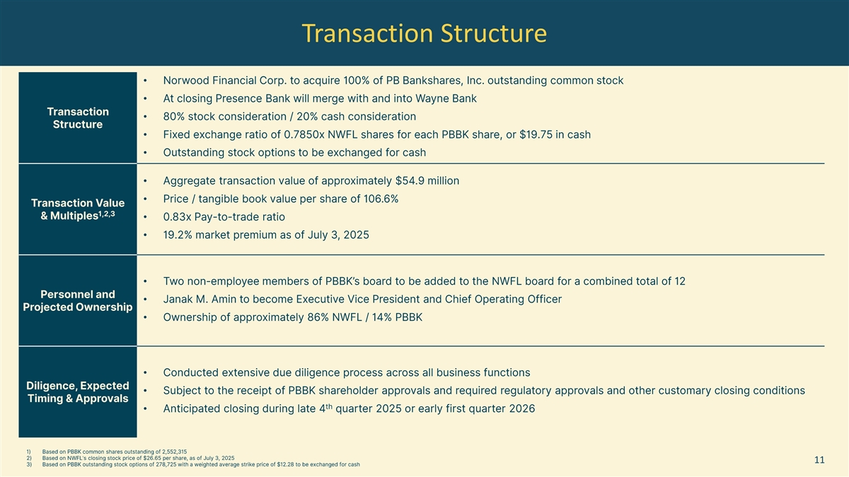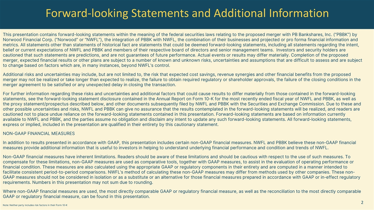 Exhibit 99.1 Norwood Financial Corp Extends its Pennsylvania Presence with Strategic Acquisition of PB Bankshares, Inc. J u l y 7 , 2 0 2 5