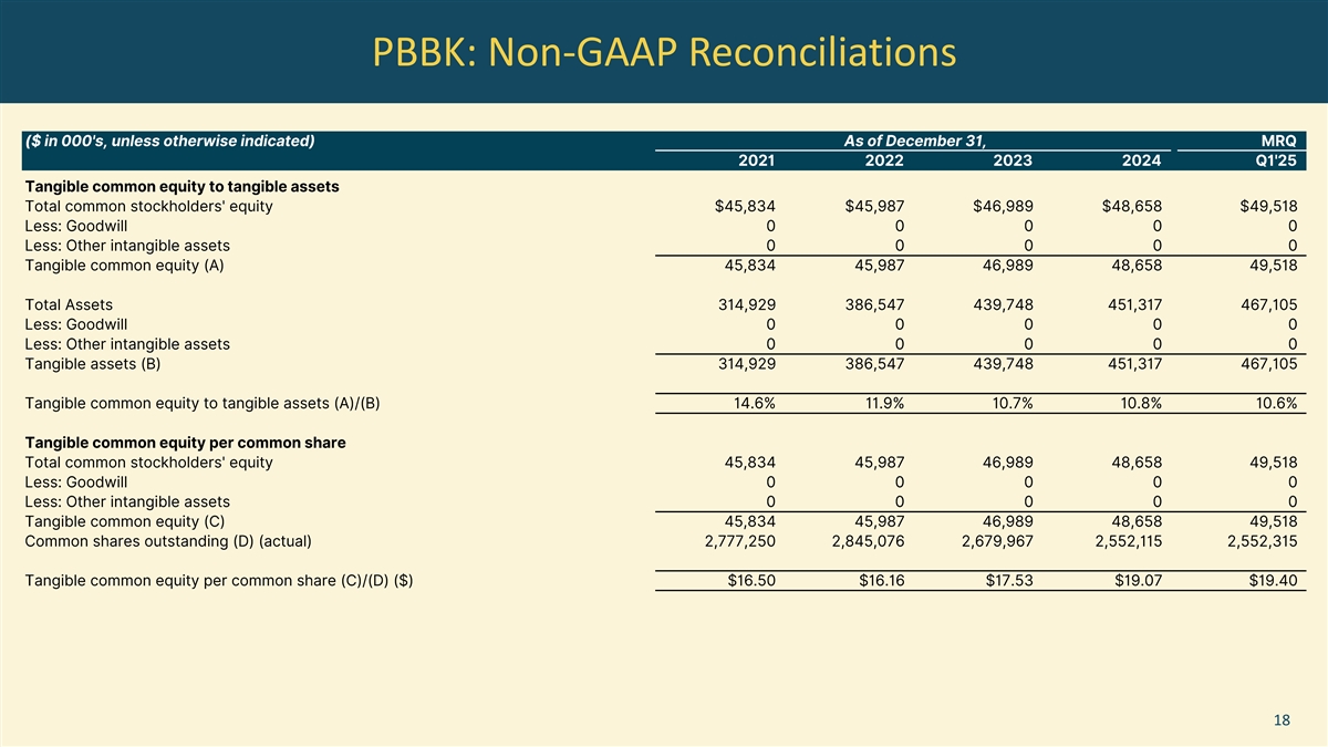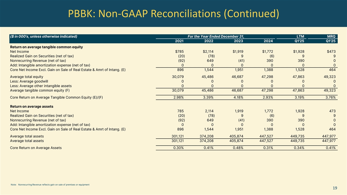 PBBK: Non-GAAP Reconciliations (Continued) 19