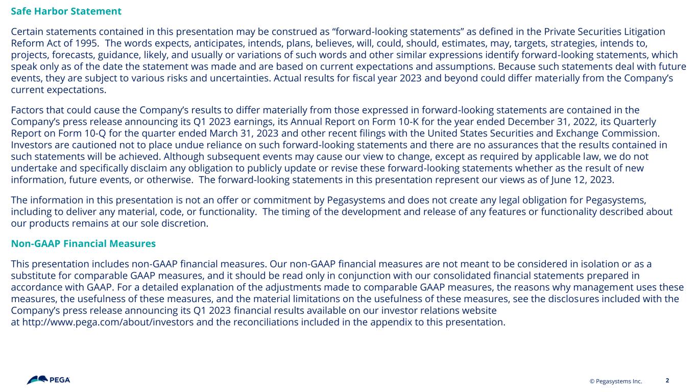 © 2023 Pegasystems Inc. Investor Session 2023 June 12, 2023