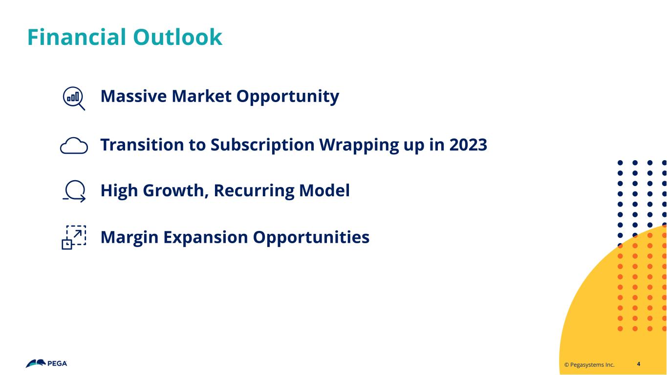 Financial Outlook 4 Margin Expansion Opportunities Massive Market Opportunity High Growth, Recurring Model Transition to Subscription Wrapping up in 2023 © Pegasystems Inc.