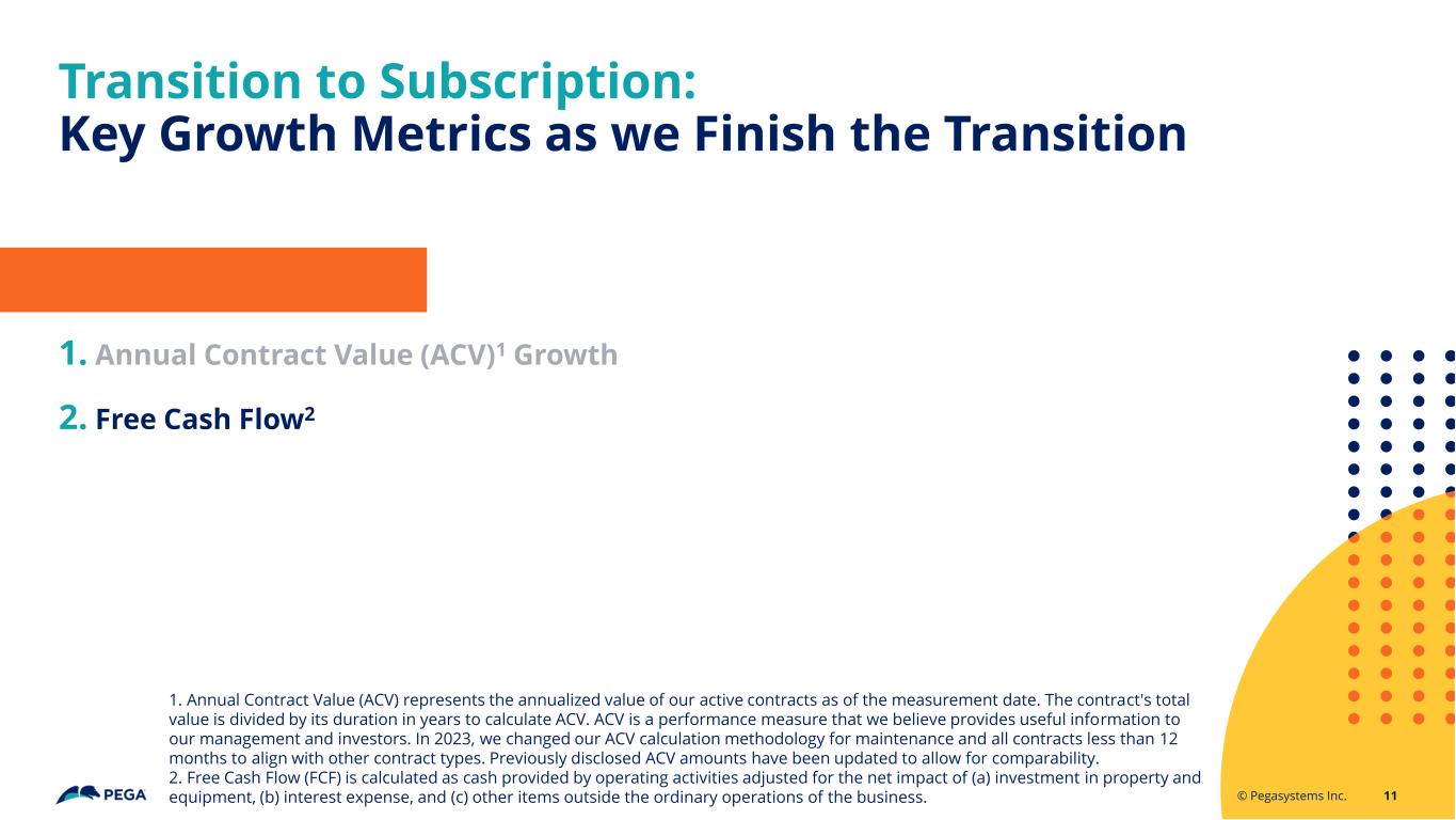 ACV Growth Drivers GenAI Process mining Process AI Pega Launchpad Voice AI 10© Pegasystems Inc.INNOVATE EXECUTE Consumption-based contracts Target org model Cloud Choice