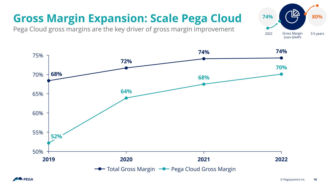 Gross Margin Expansion: Scale Pega Cloud On a trailing 12-month basis, Pega Cloud revenue increased from $51M to $402M © Pegasystems Inc. 17 $51M $56M $64M $73M $83M $95M $106M $119M $134M $149M $167M $186M $208M $233M $257M $281M $301M $323M $344M $363M $384M $402M Q4 17 Q1 18 Q4 19Q4 18Q2 18 Q3 18 Q1 19 Q2 19 Q3 19 Q2 22 Q4 22Q2 20 Q3 21Q1 20 Q3 20 Q2 21Q4 20 Q1 21 Q4 21 Q1 22 Q3 22 Q1 23 Cloud Transition Begins 80%74% Gross Margin (non-GAAP) 2022 3-5 years Trailing 12-month Pega Cloud Revenue