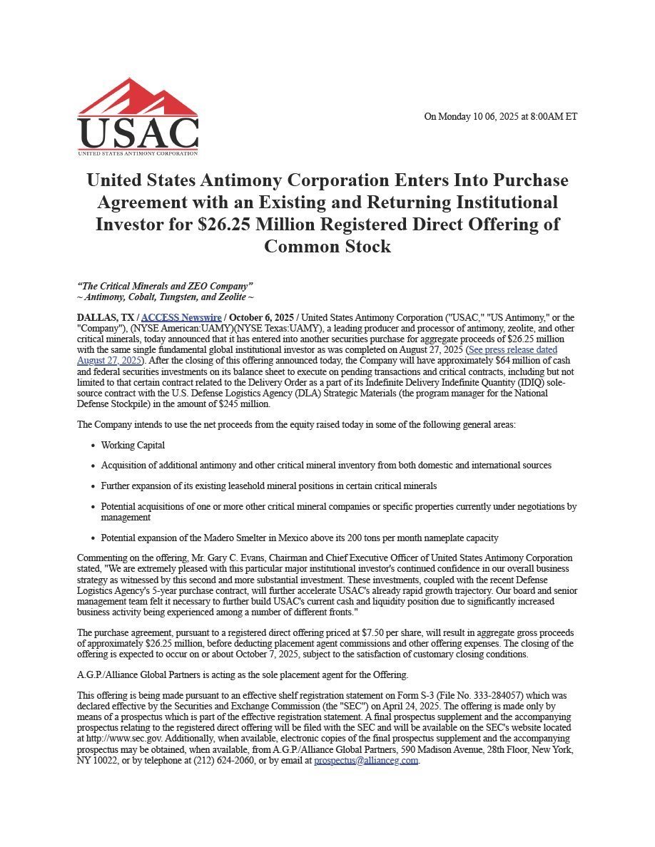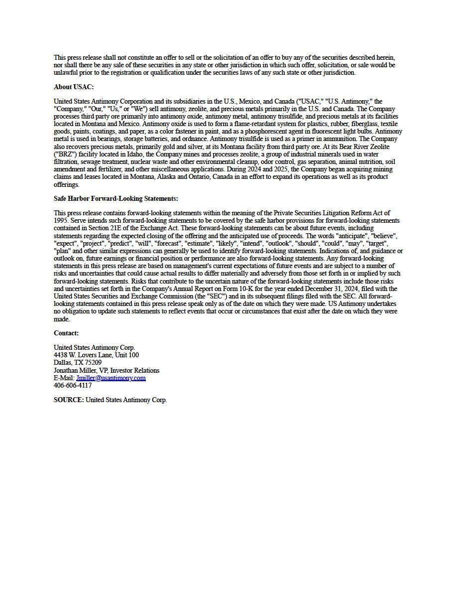 EX-99.1 2 uamy_ex991.htm PRESS RELEASE uamy_ex991.htm