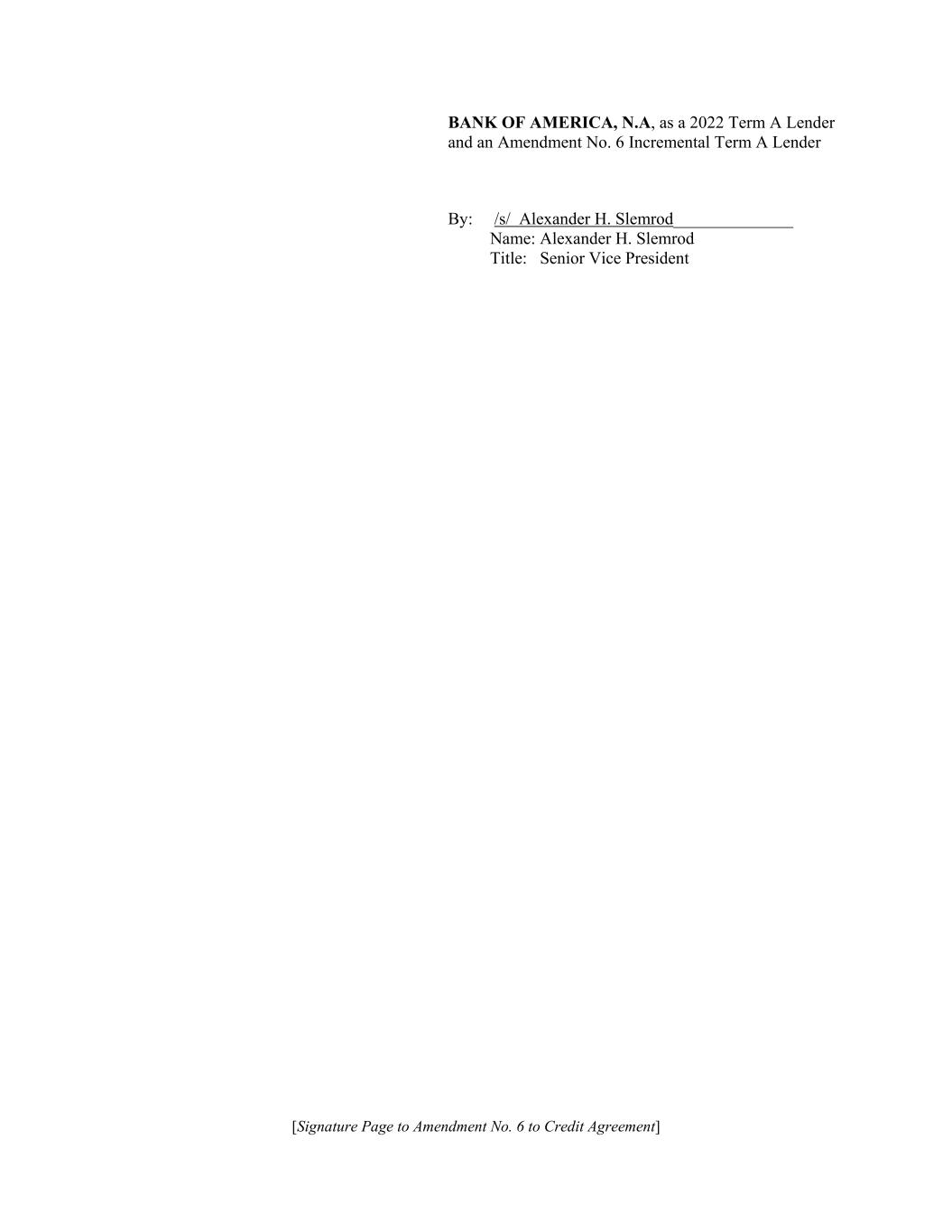 [Signature Page to Amendment No. 6 to Credit Agreement] BANK OF AMERICA, N.A, as a 2022 Term A Lender and an Amendment No. 6 Incremental Term A Lender By: /s/ Alexander H. Slemrod______________ Name: Alexander H. Slemrod Title: Senior Vice President