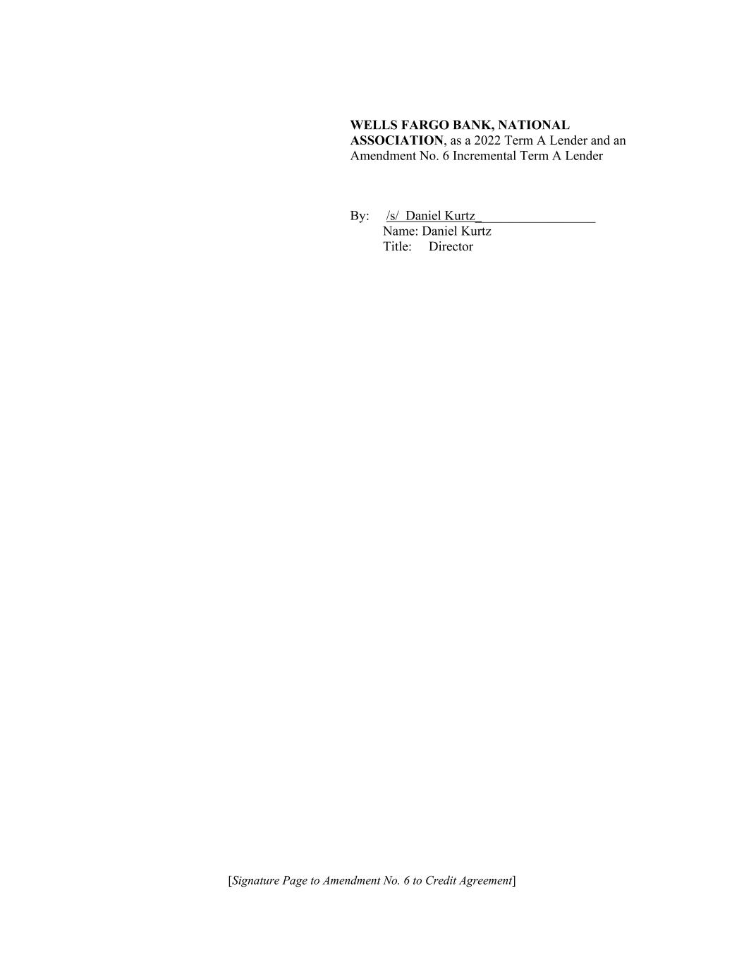 [Signature Page to Amendment No. 6 to Credit Agreement] WELLS FARGO BANK, NATIONAL ASSOCIATION, as a 2022 Term A Lender and an Amendment No. 6 Incremental Term A Lender By: /s/ Daniel Kurtz__________________ Name: Daniel Kurtz Title: Director