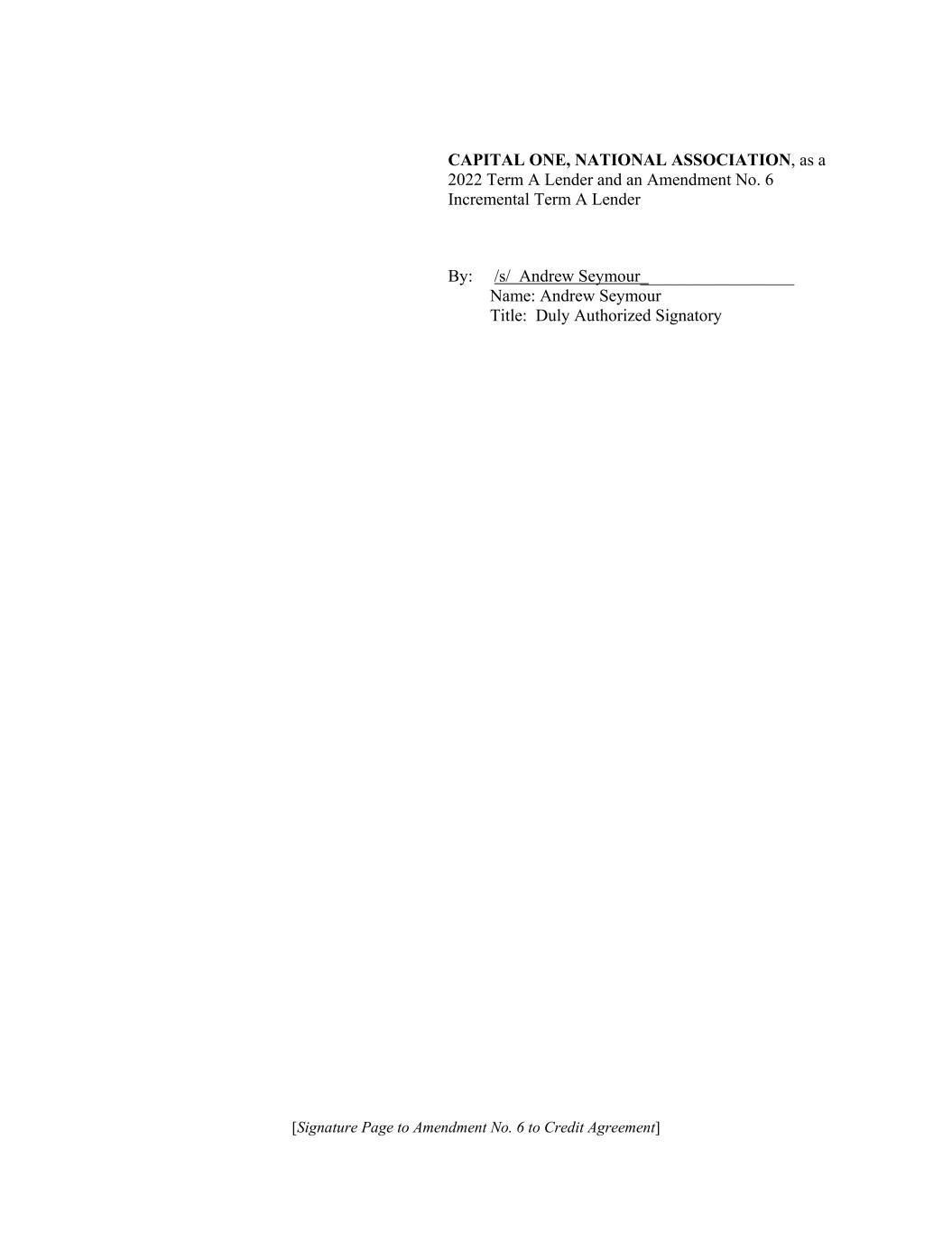 [Signature Page to Amendment No. 6 to Credit Agreement] CAPITAL ONE, NATIONAL ASSOCIATION, as a 2022 Term A Lender and an Amendment No. 6 Incremental Term A Lender By: /s/ Andrew Seymour__________________ Name: Andrew Seymour Title: Duly Authorized Signatory