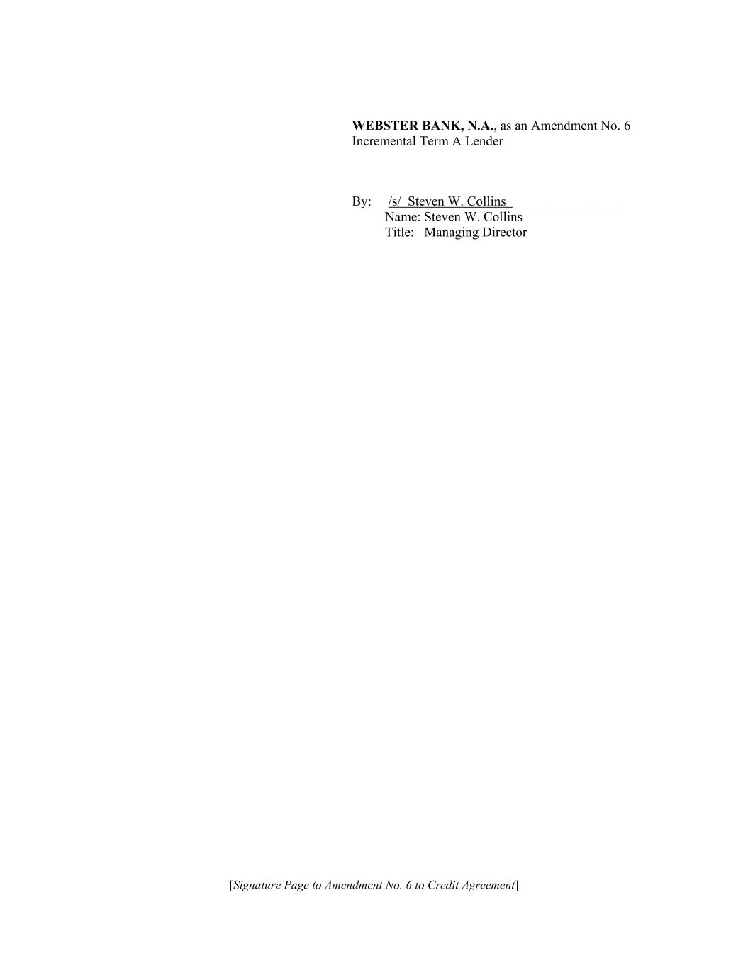[Signature Page to Amendment No. 6 to Credit Agreement] WEBSTER BANK, N.A., as an Amendment No. 6 Incremental Term A Lender By: /s/ Steven W. Collins_________________ Name: Steven W. Collins Title: Managing Director