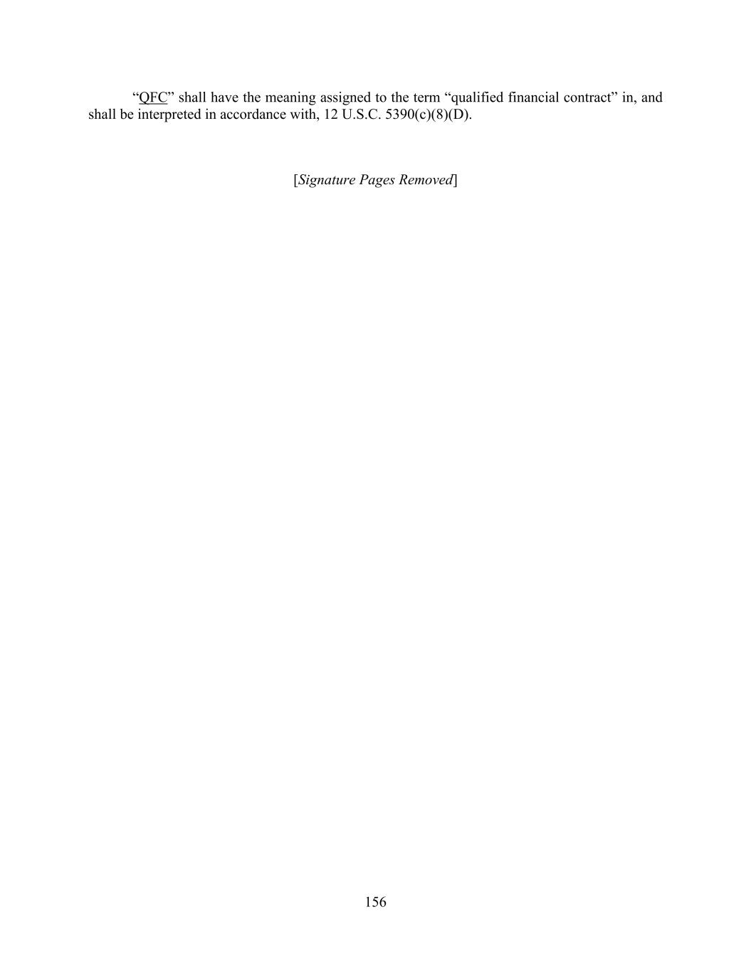 156 “QFC” shall have the meaning assigned to the term “qualified financial contract” in, and shall be interpreted in accordance with, 12 U.S.C. 5390(c)(8)(D). [Signature Pages Removed]
