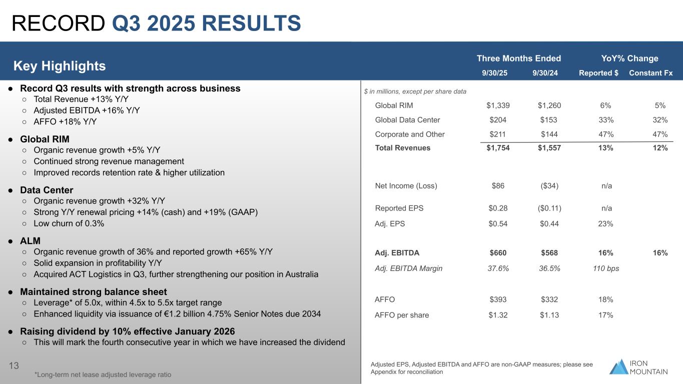 IRON MOUNTAIN Q1 2025 Earnings Presentation IRON MOUNTAIN Q3 2025 Earnings Presentation November 5, 2025