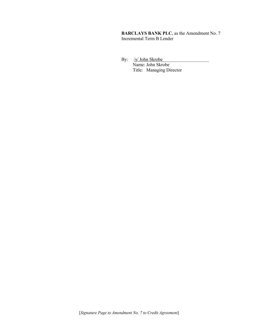 [Signature Page to Amendment No. 7 to Credit Agreement] BARCLAYS BANK PLC, as the Amendment No. 7 Incremental Term B Lender By: /s/ John Skrobe____________________ Name: John Skrobe Title: Managing Director