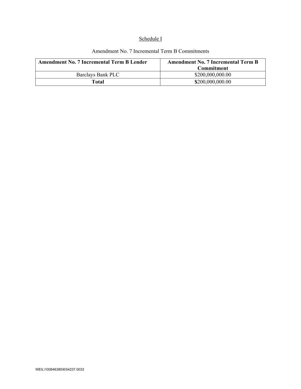 WEIL\100846380\6\54237.0033 Schedule I Amendment No. 7 Incremental Term B Commitments Amendment No. 7 Incremental Term B Lender Amendment No. 7 Incremental Term B Commitment Barclays Bank PLC $200,000,000.00 Total $200,000,000.00