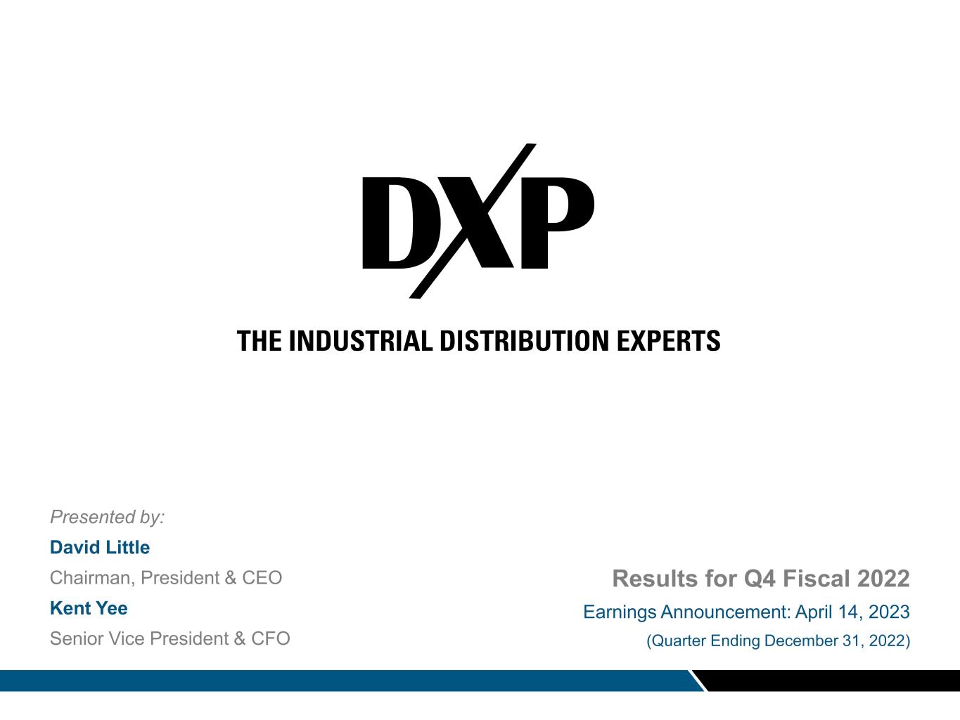 Results for Q4 Fiscal 2022 Earnings Announcement: April 14, 2023 (Quarter Ending December 31, 2022) Presented by: David Little Chairman, President & CEO Kent Yee Senior Vice President & CFO
