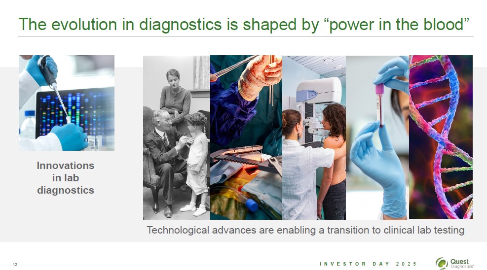 The evolution in diagnostics is shaped by "power in the blood" Innovations in lab diagnostics Technological advances are enabling a transition to clinical lab testing 12 Investor Day 2025 Quest Diagnostics