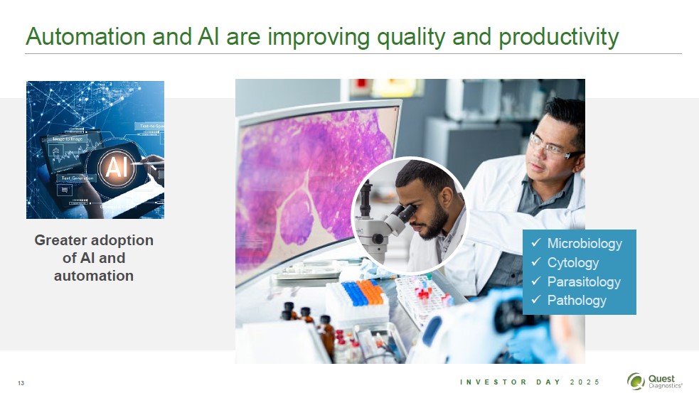 Automation and AI are improving quality and productivity Greater adoption of AI and automation Microbiology Cytology Parasitology Pathology 13 Investor Day 2025 Quest Diagnostics