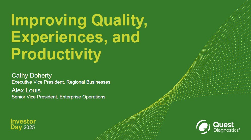 Improving Quality, Experiences, and Productivity Cathy Doherty Executive Vice President, Regional Businesses Alex Louis Senior Vice President, Enterprise Operations Investor Day 2025 Quest Diagnostics