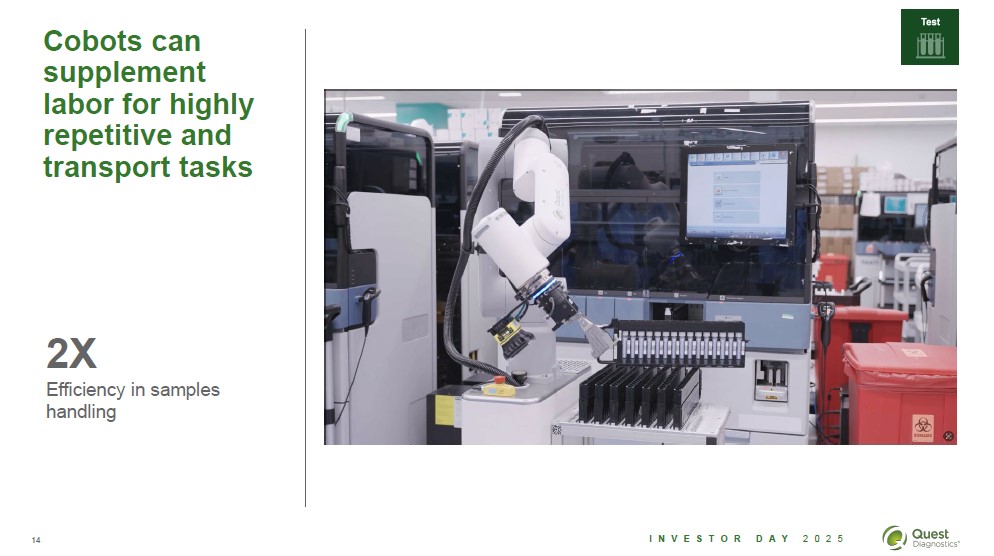 13 INVESTOR DAY 2025 Quest Diagnostics Test Our automated accessioning station will dramatically speed up specimen management 3X Increase in departmental productivity
