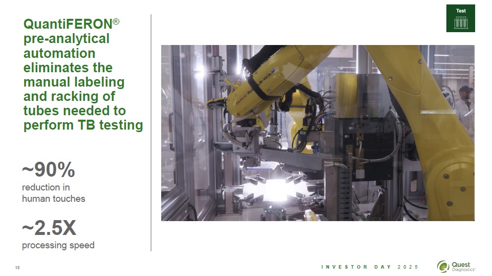 14 INVESTOR DAY 2025 Quest Diagnostics Test Cobots can supplement labor for highly repetitive and transport tasks 2X Efficiency in samples handling