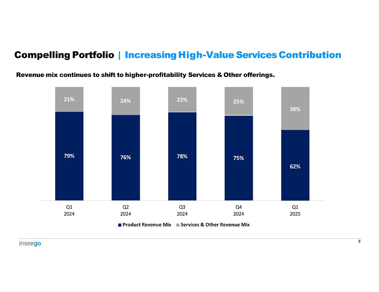 Total Revenue | Robust SaaS Revenue Profile Q1 2025 Services & Other revenue grew 49% YoY, while total revenue declined by 16% on account of short - term headwinds in the FWA product. 29.5 39.2 42.0 35.9 19.7 8.1 12.4 12.0 12.2 12.0 37.5 51.6 54.0 48.1 31.7 Q1 2024 Q2 2024 Q3 2024 Q4 2024 Q1 2025 Product Revenue Services & Other Revenue 7 ($ millions)