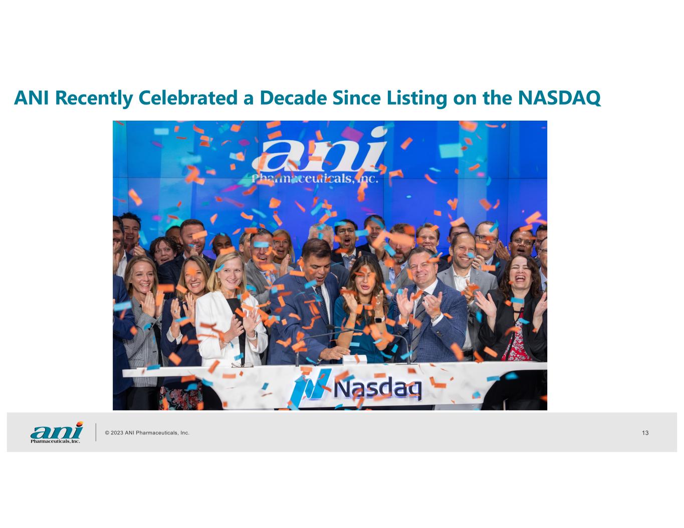 © 2023 ANI Pharmaceuticals, Inc. 13 ANI Recently Celebrated a Decade Since Listing on the NASDAQ