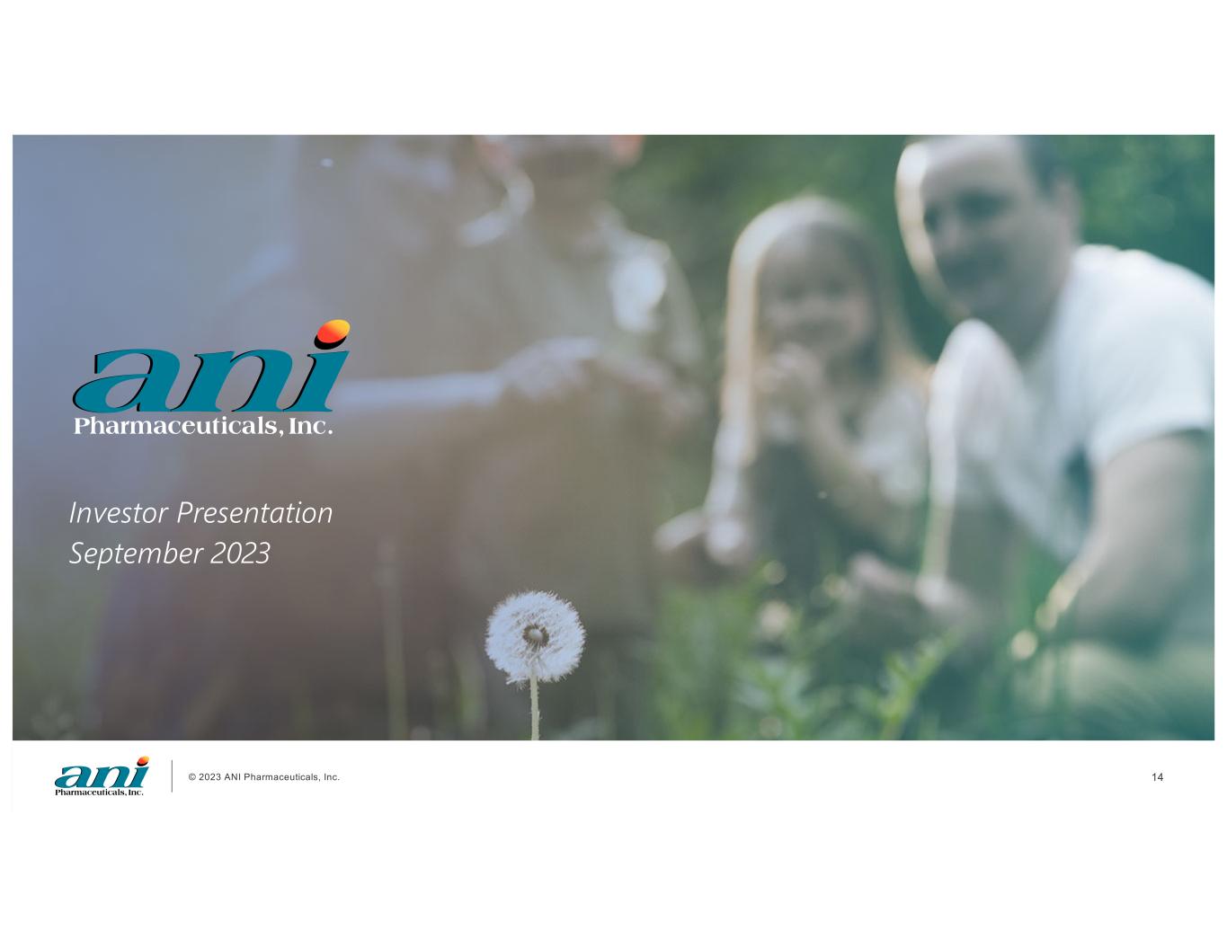 © 2023 ANI Pharmaceuticals, Inc. 14 Investor Presentation September 2023