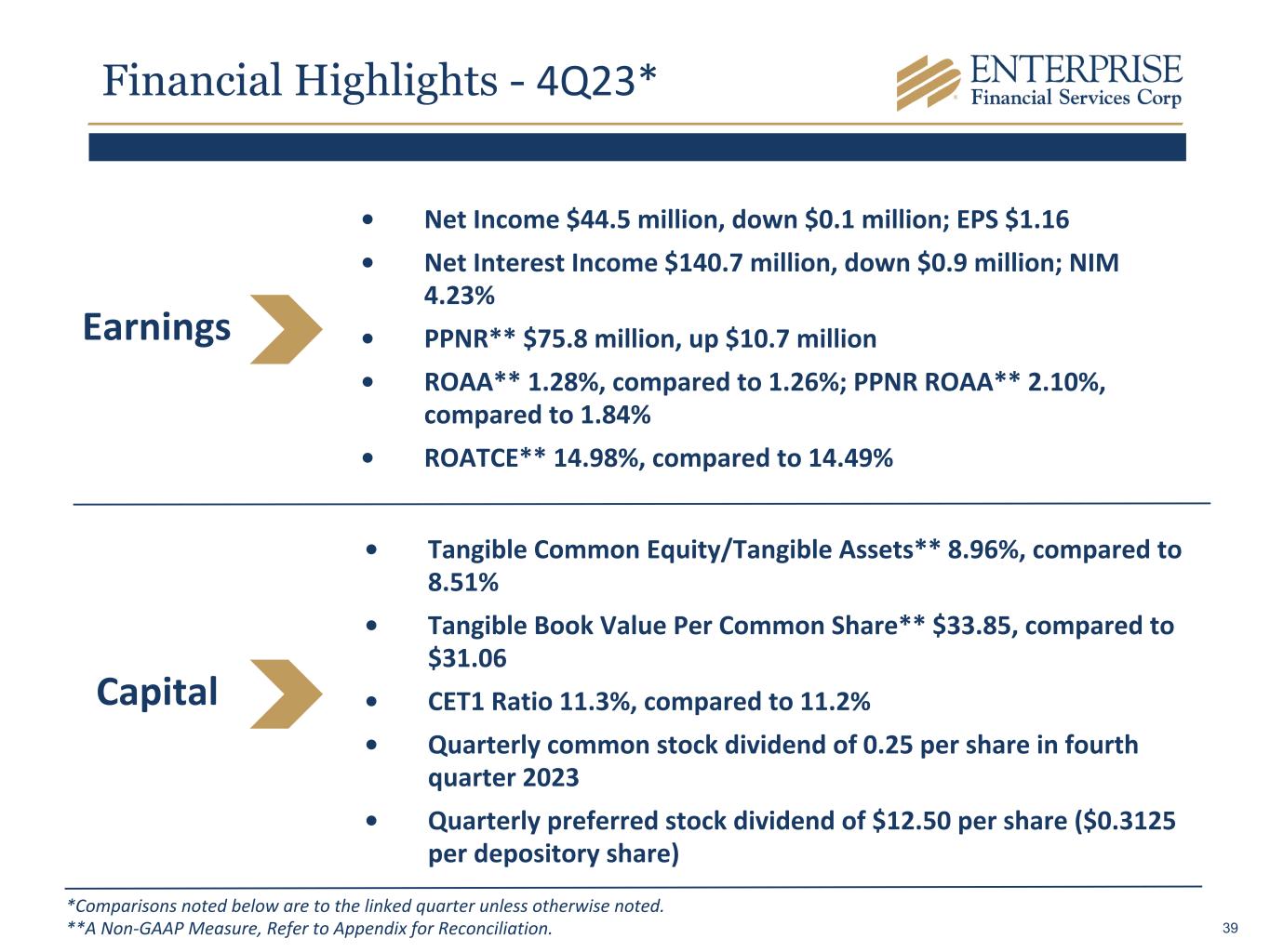 Fourth Quarter 2023 Investor Presentation Exhibit 99.1 Enterprise Financial Services Corp